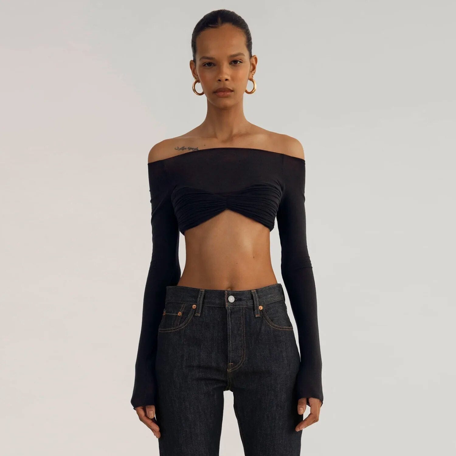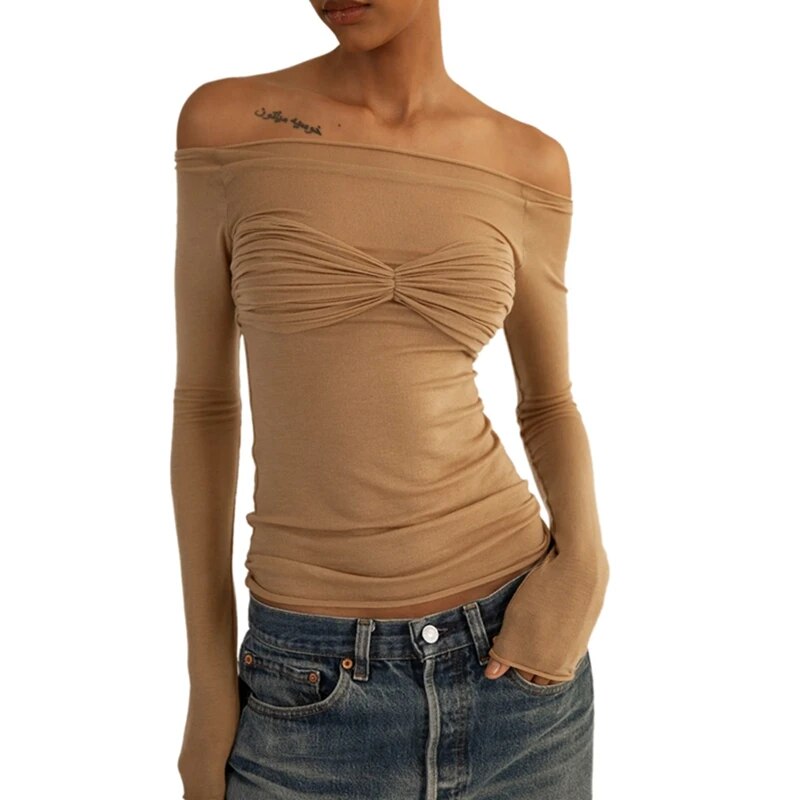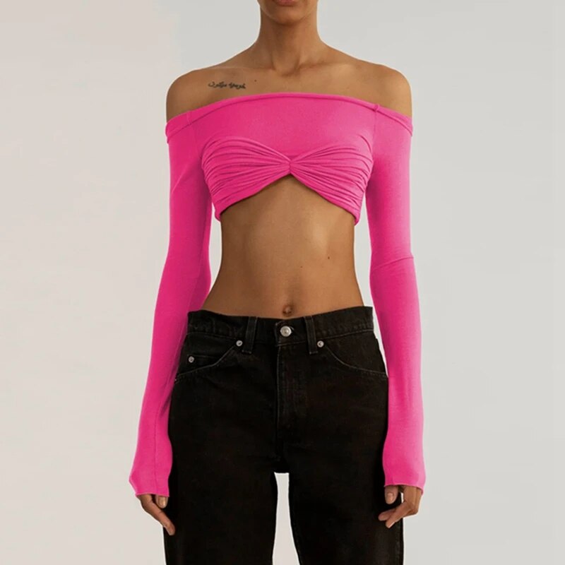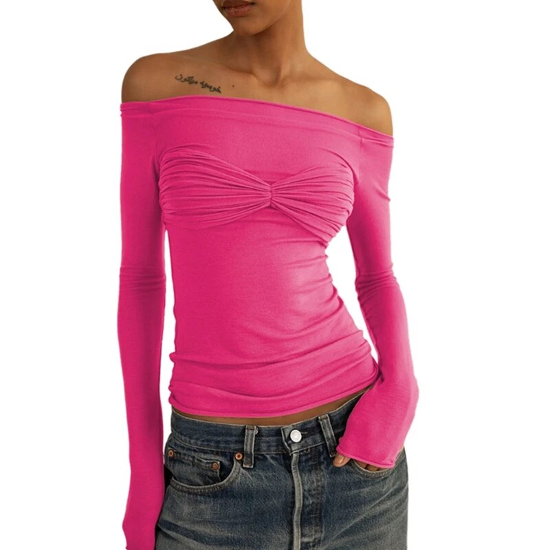 Yipinpay Shoulder See Through Mesh Women's T-shirt Spring 2023 Y2k Tops Long Sleeve Crop Tees Streetwear Sexy Ruched T Shirts White