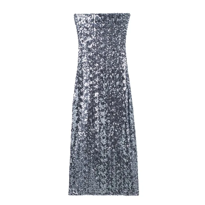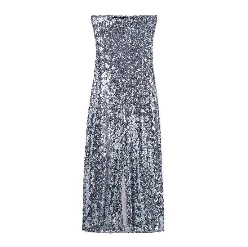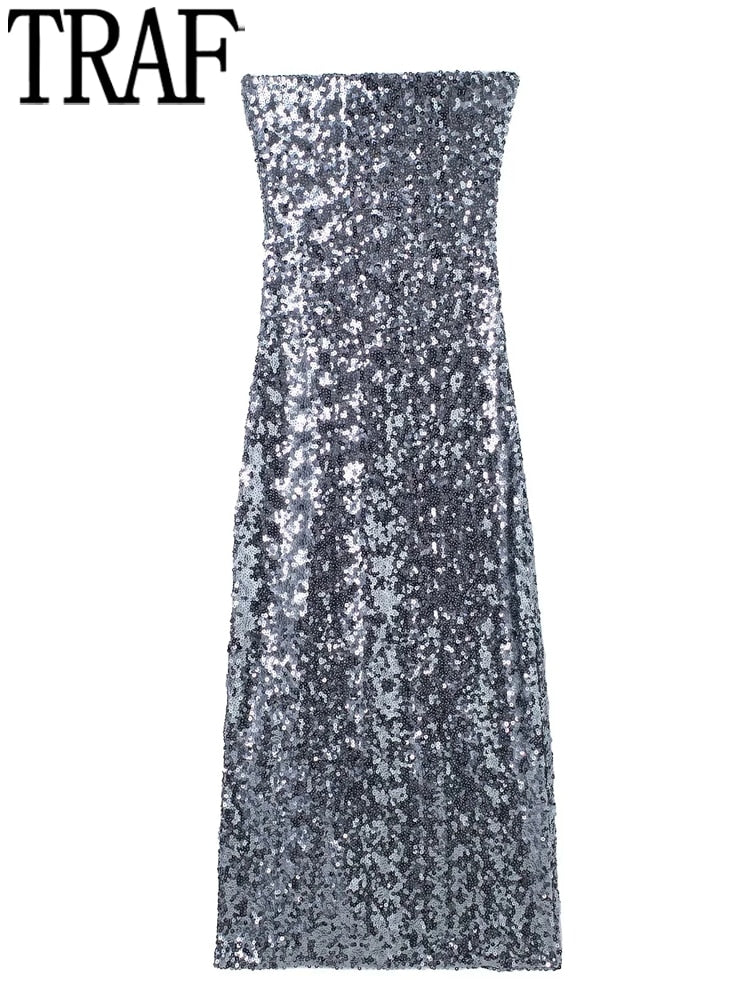 Yipinpay Silver Sequin Dress Woman Off Shoulder Long Dresses For Women 2023 Bodycon Glitter Dress Christmas Evening Party Dresses