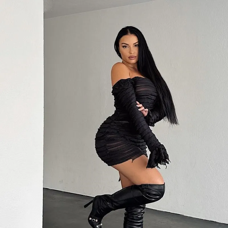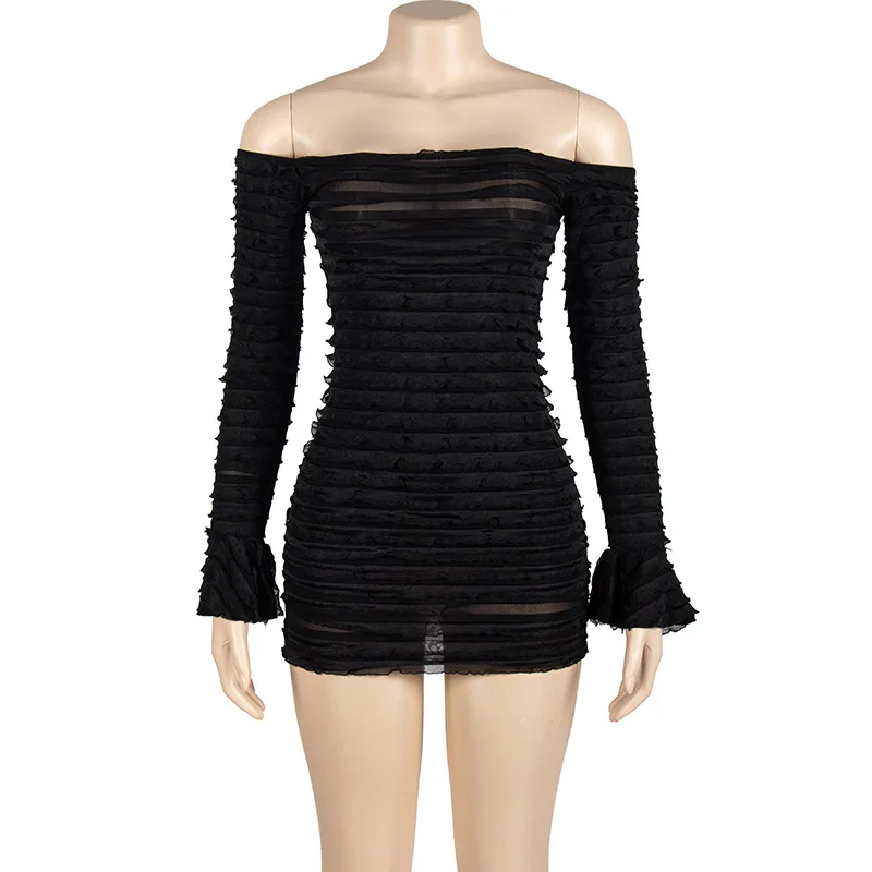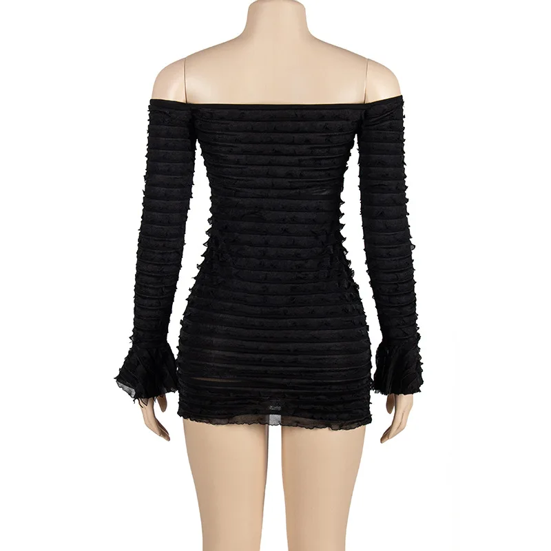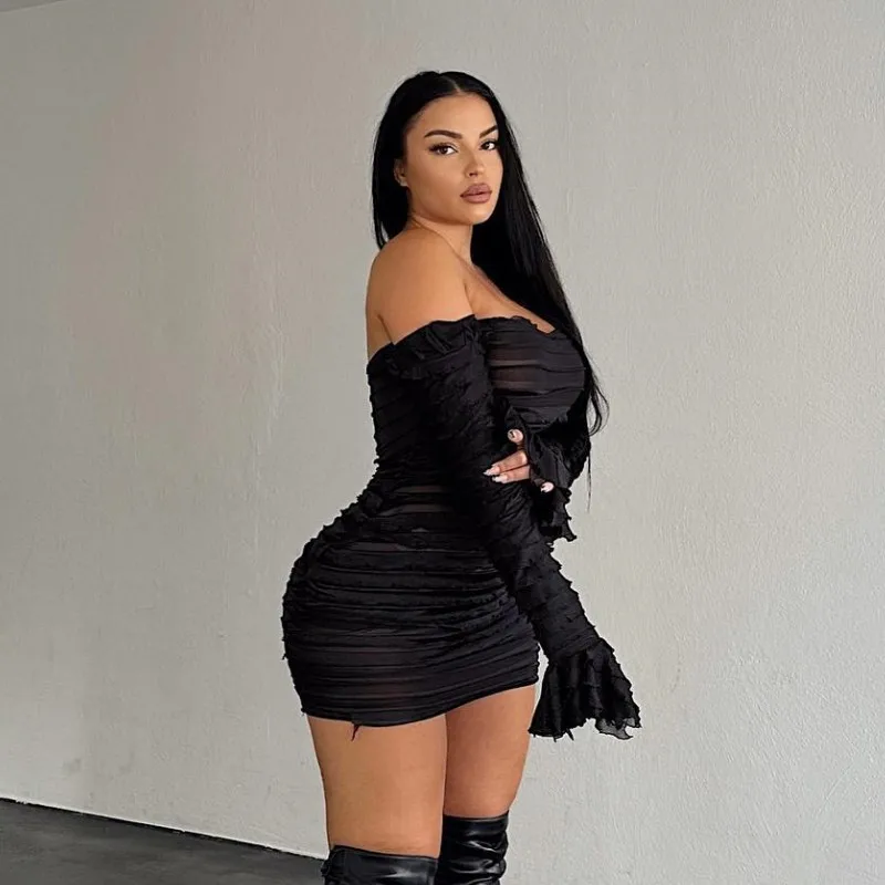Yipinpay Simenual Balck Ruched Clubwear Women Sexy Off Shoulder See Through Mini Dress Baddie Hot Pleated Bodycon Dresses Fairy Holiday