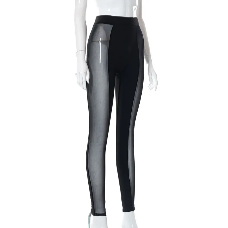 Yipinpay Simenual Black Skinny Leggings Pant Sexy Mesh Patchwork Transparent High Waist Pencil Pants Baddie Clubwear Hot Legging Trousers