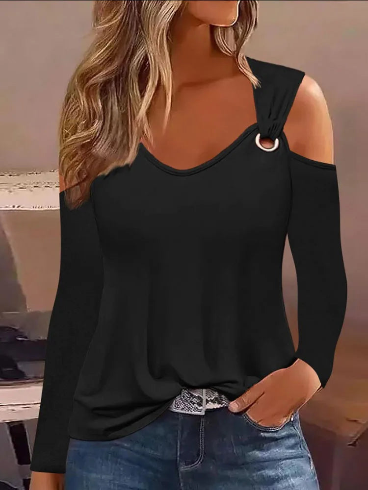 Yipinpay Simple Metal Button V-neck Shirt Blouse For Women 2024 New Fashion Sexy Women Casual Shirt Pullover Tops Female Clothing