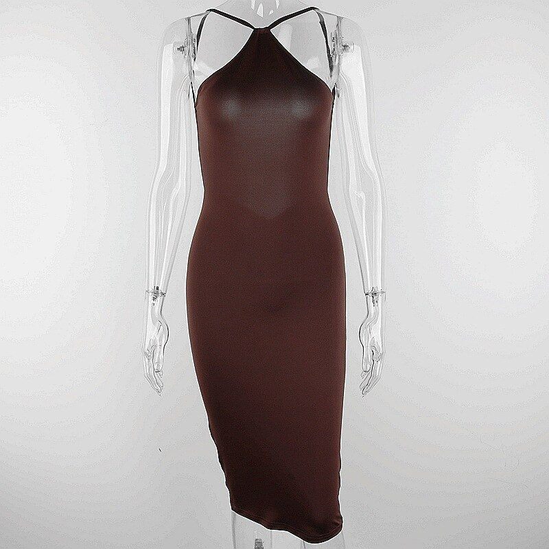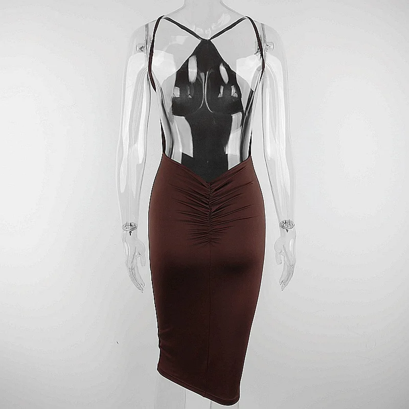 yipinpay Skims Dress Women Summer Dress Sleeveless Brown Bodycon Dress Female Solid Tank Dress Ruched Streetwear Sexy Dress