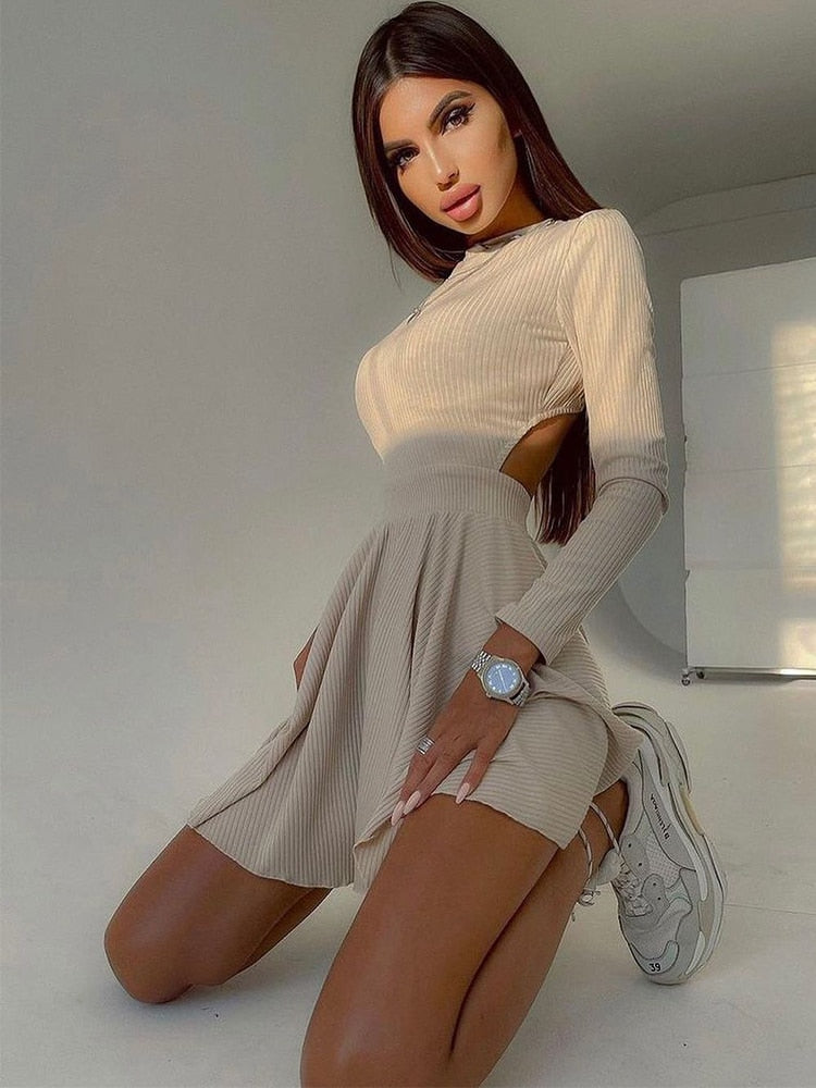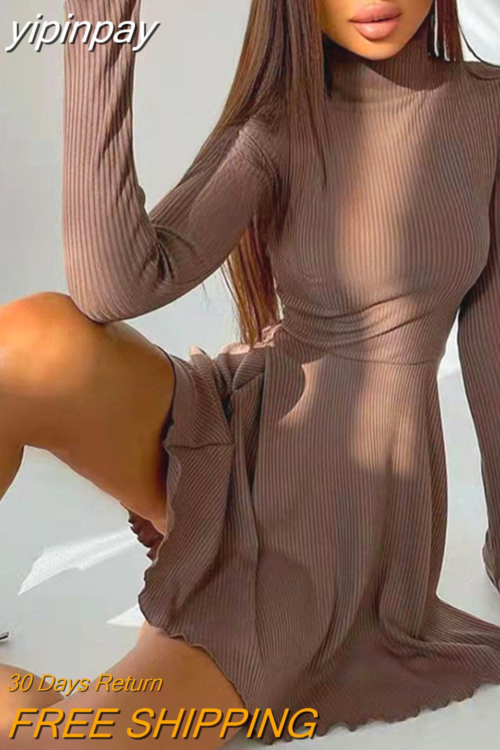 yipinpay Sleeve Dress Pleated Party Dress Black Bodycon Dress Autumn Winter Cut Out Streetwear Chrismas Clothes Backless Mini Dress