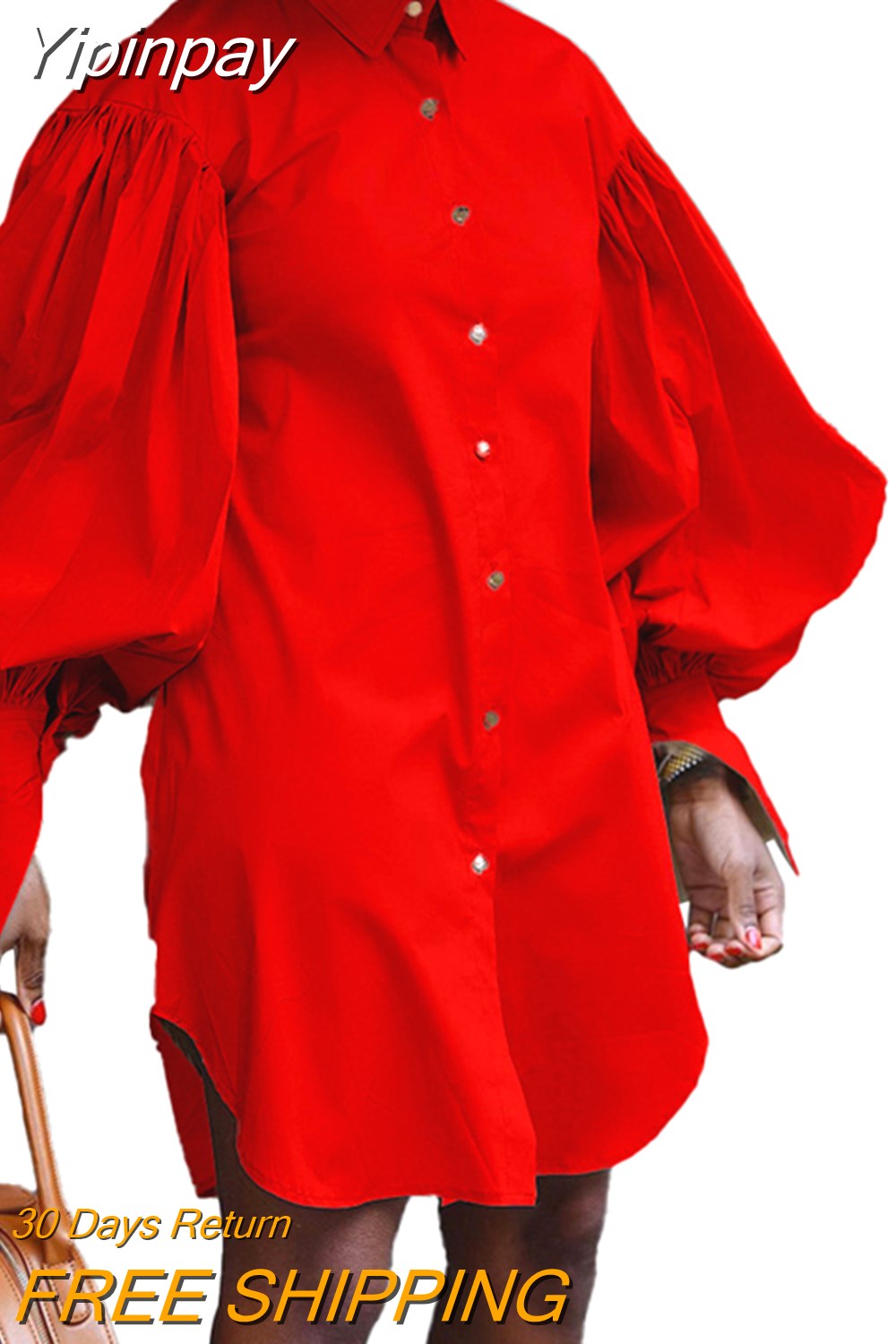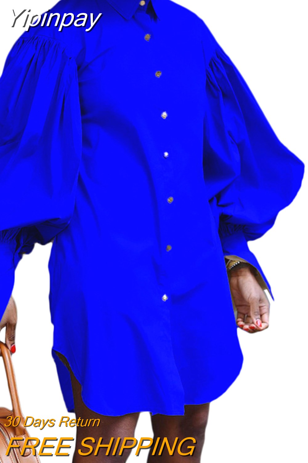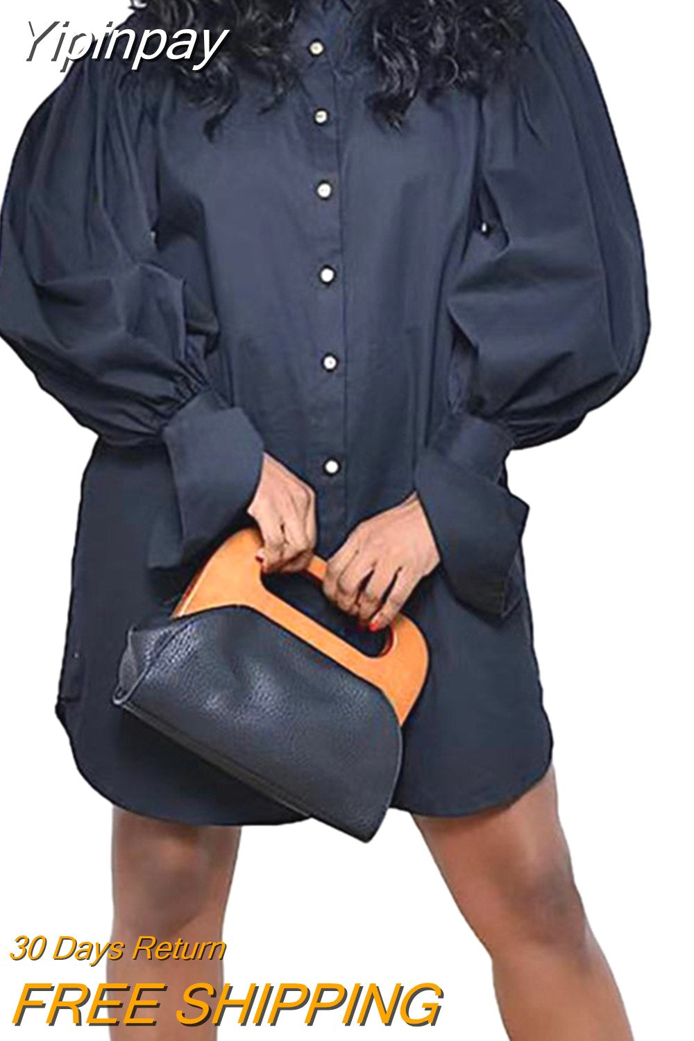 Yipinpay Sleeve Elegant Shirt White Black Sexy Button Vintage Blouse Turn Down Collar Office Ladies Long Shirt Female Casual 2023