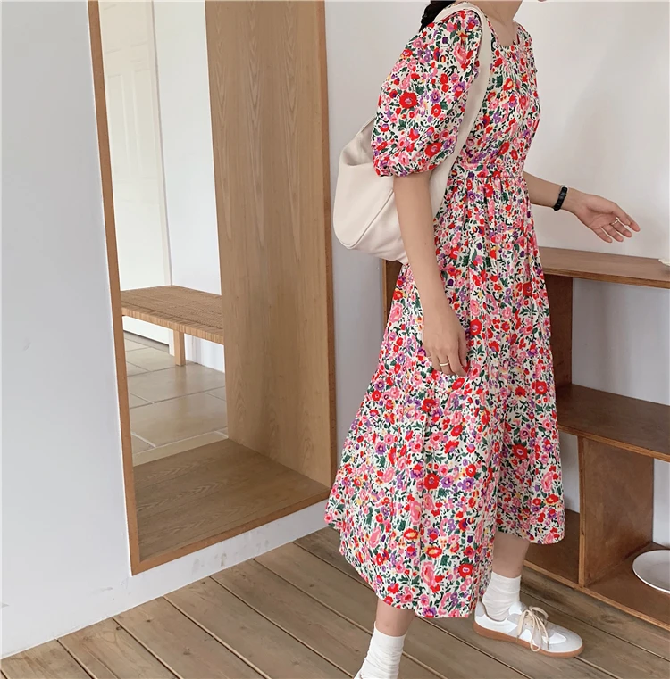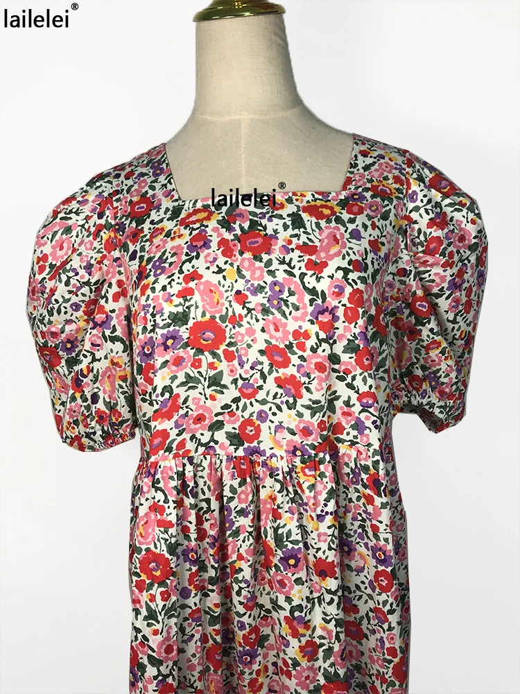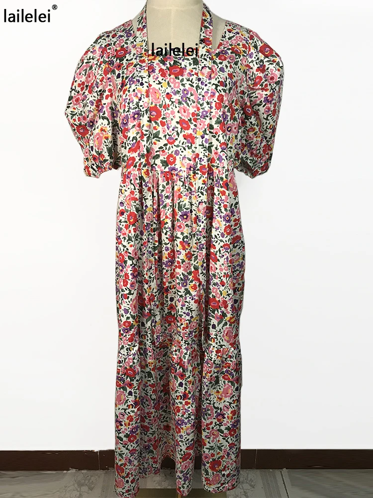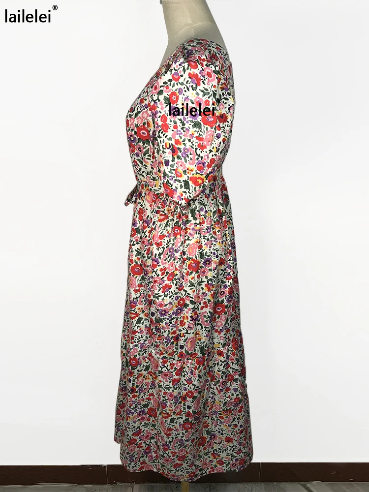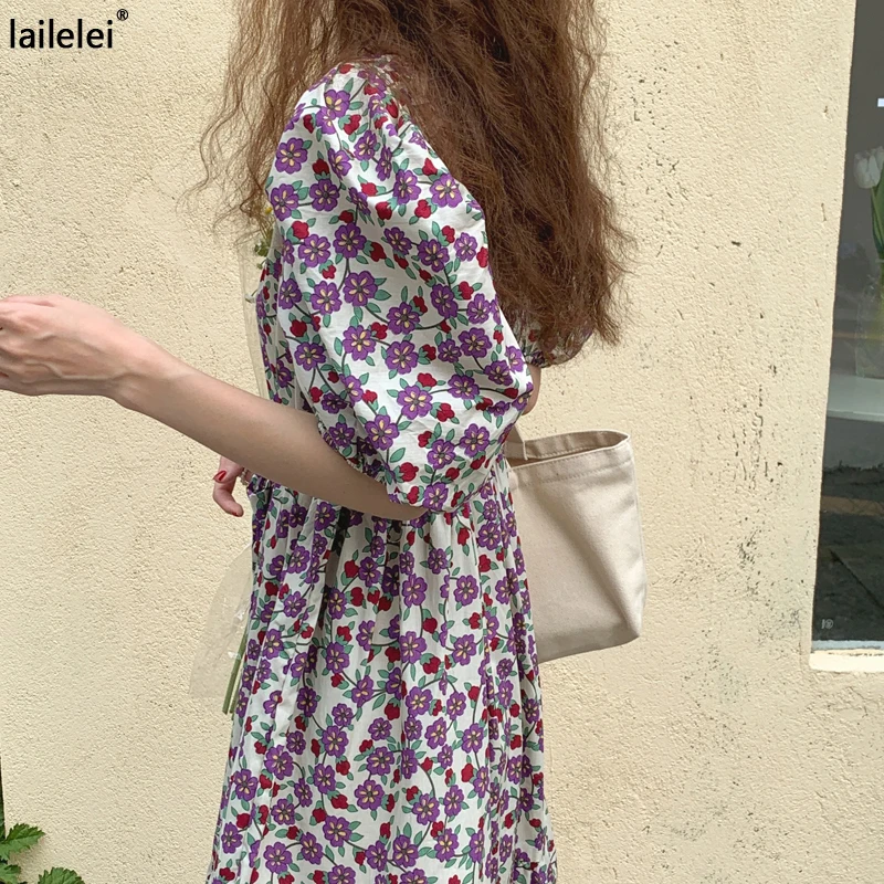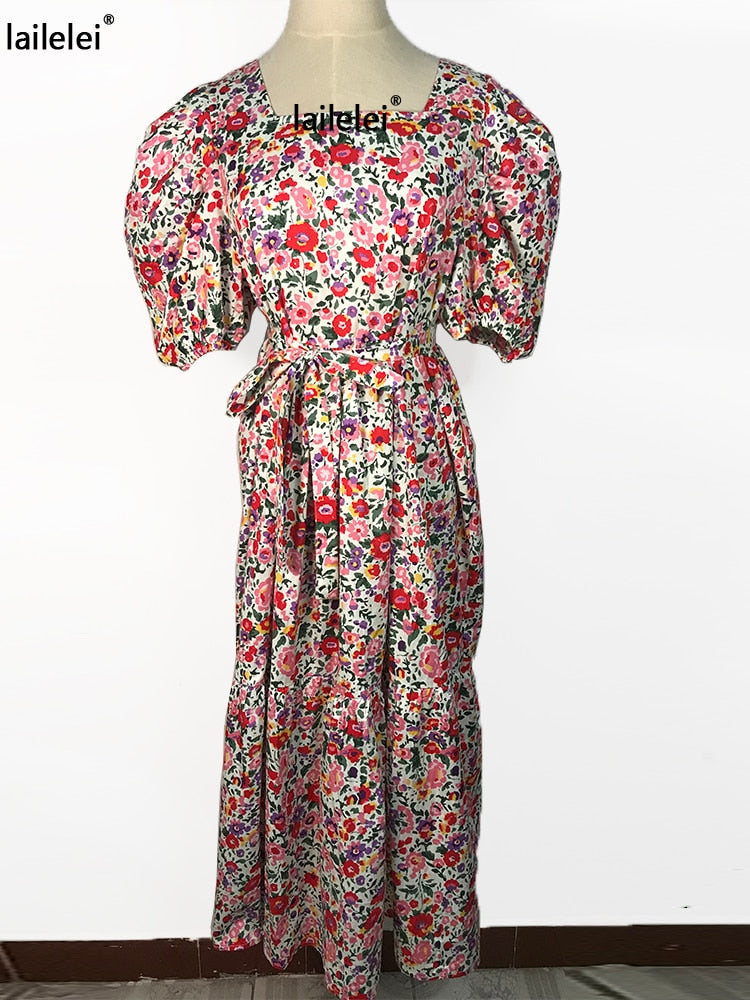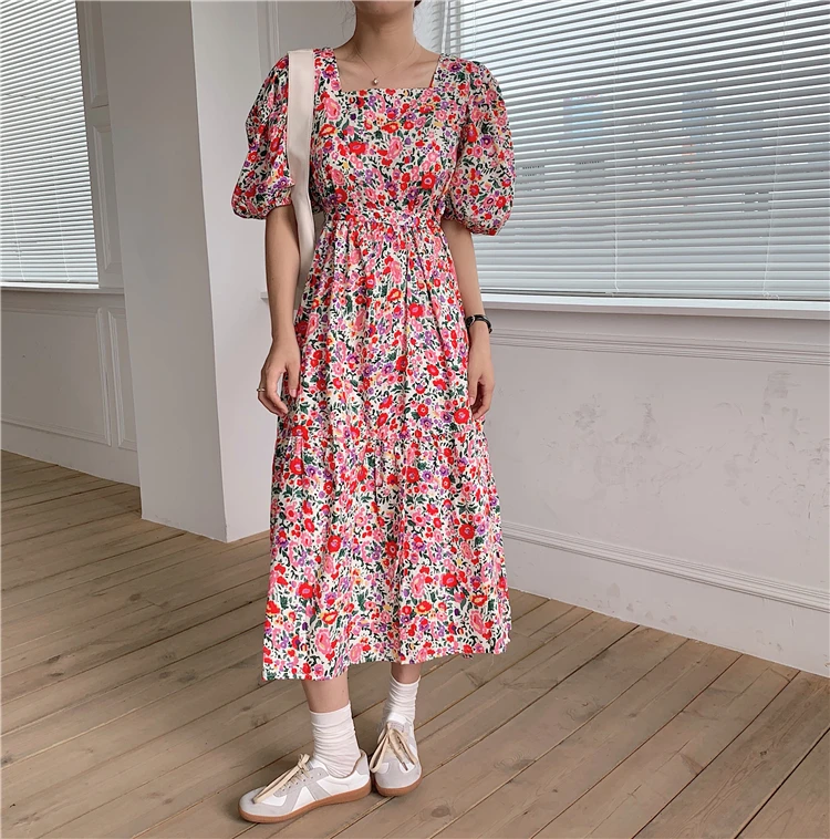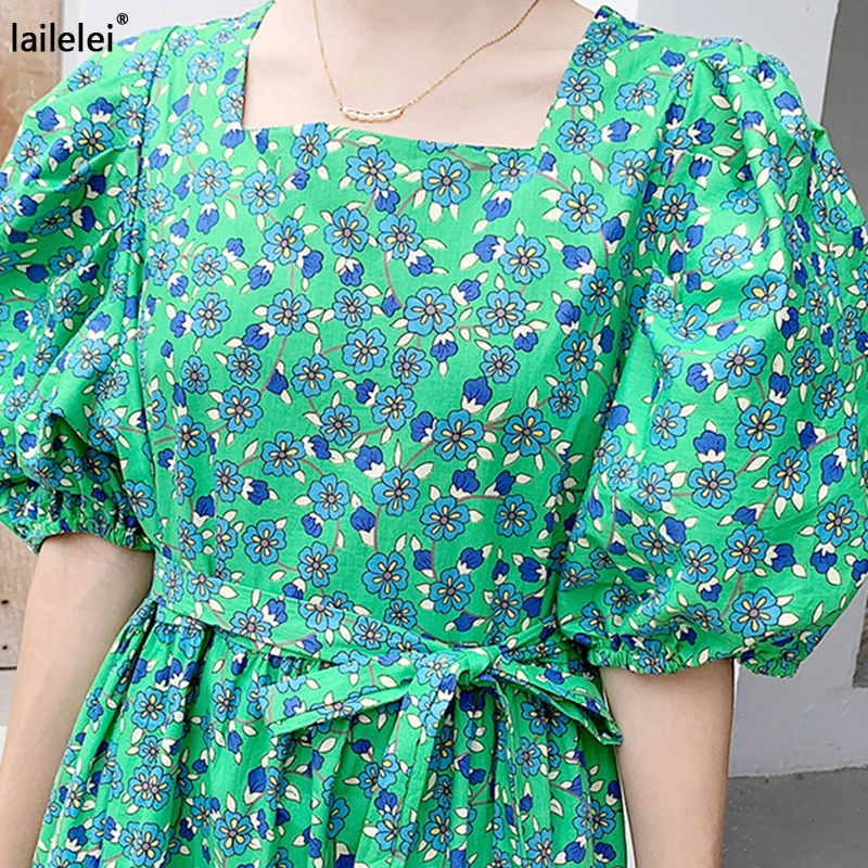 Yipinpay Sleeve Floral Maxi Dress Square Collar a Line Cotton Robe Summer 2023 Boho Plus Size Midi Elegant Korean Harajuku Sukienki