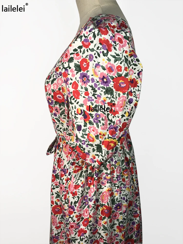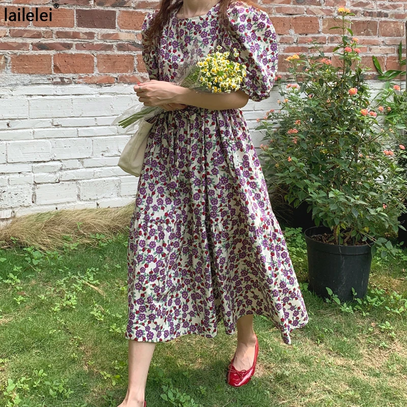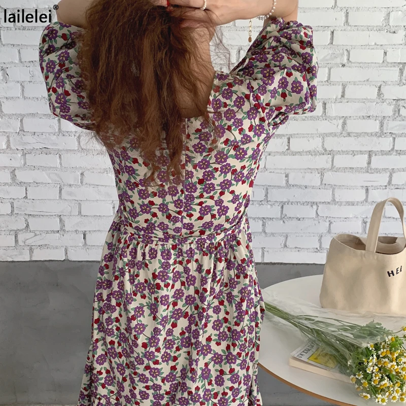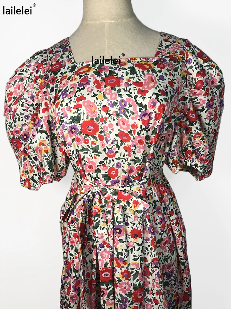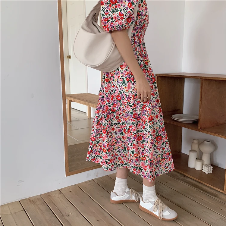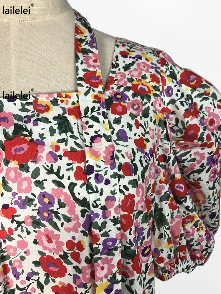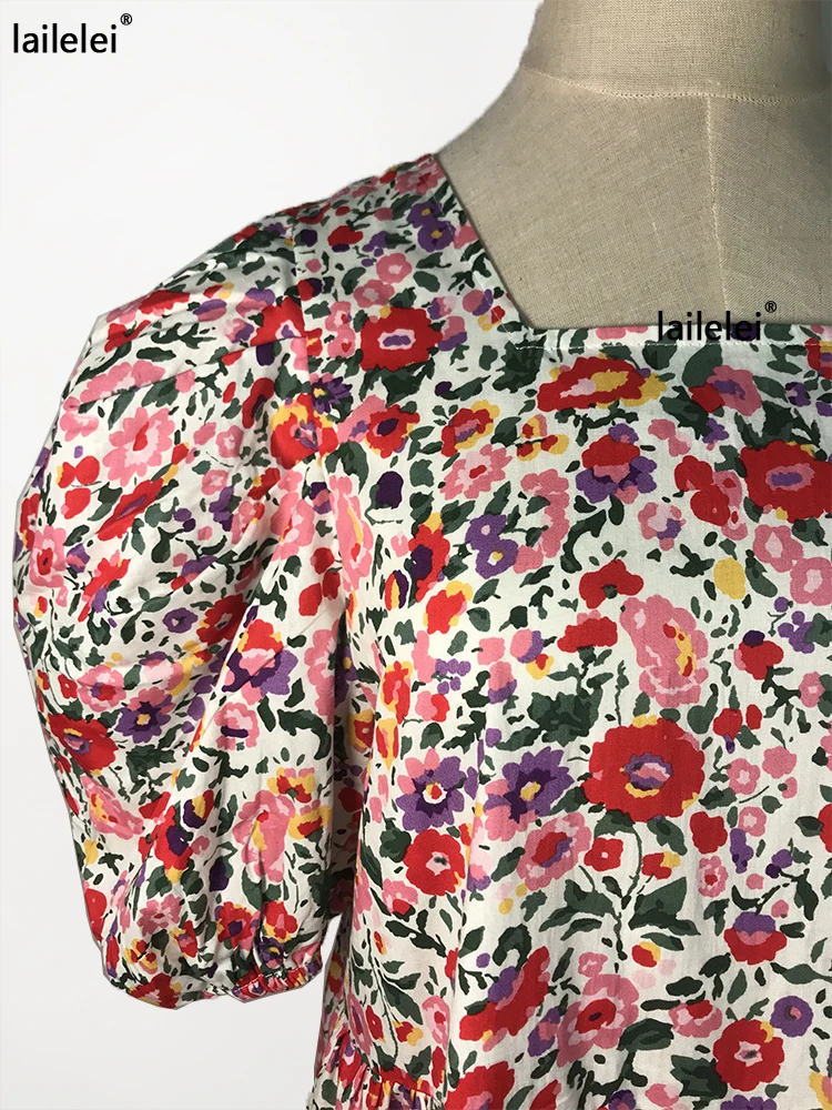 Yipinpay Sleeve Floral Maxi Dress Square Collar a Line Cotton Robe Summer 2023 Boho Plus Size Midi Elegant Korean Harajuku Sukienki
