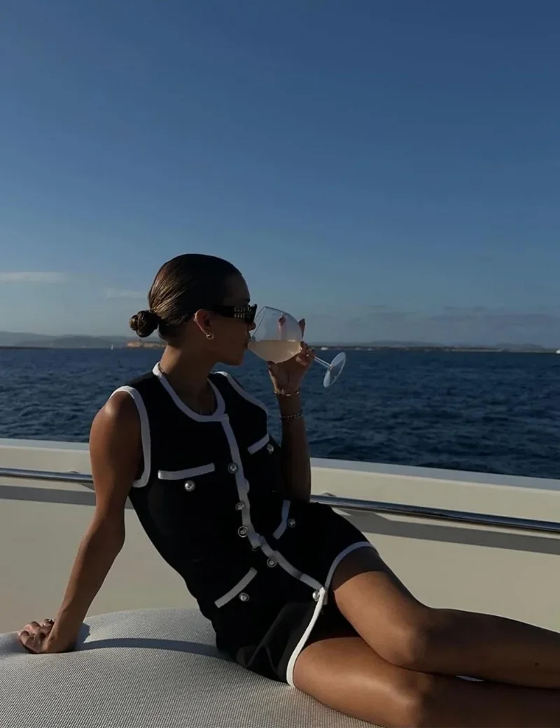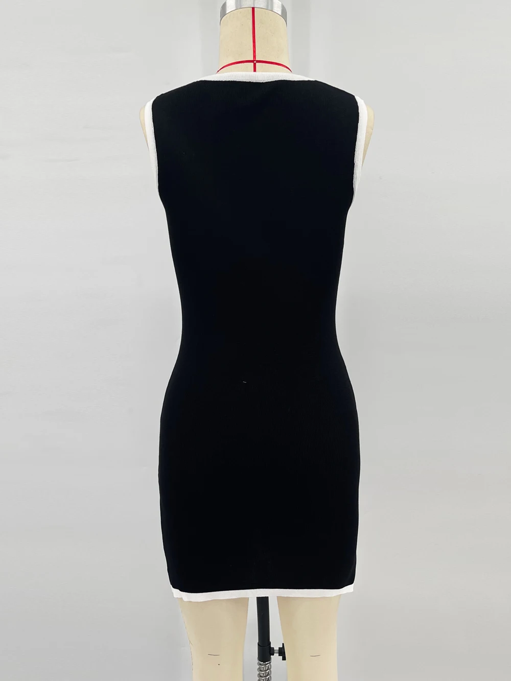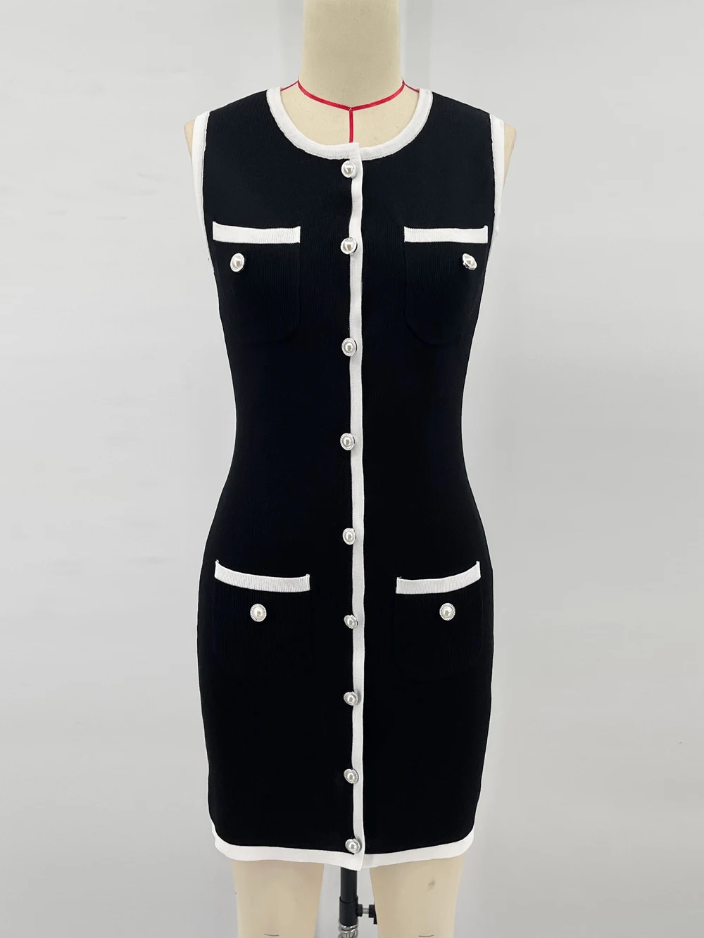 Yipinpay Sleeveless Patchwork Elegant Mini Dress For Women Knit High Waist Pocket Contrast Cardigan Dress Knitwear Fashion Dress