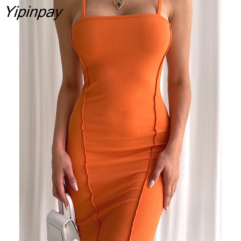 Yipinpay Sleeveless Solid Spaghetti Strap Dress Women Fashion Slim Elastic Mini Dresses Female Spring Warp Hip Bodycon Robe 2023