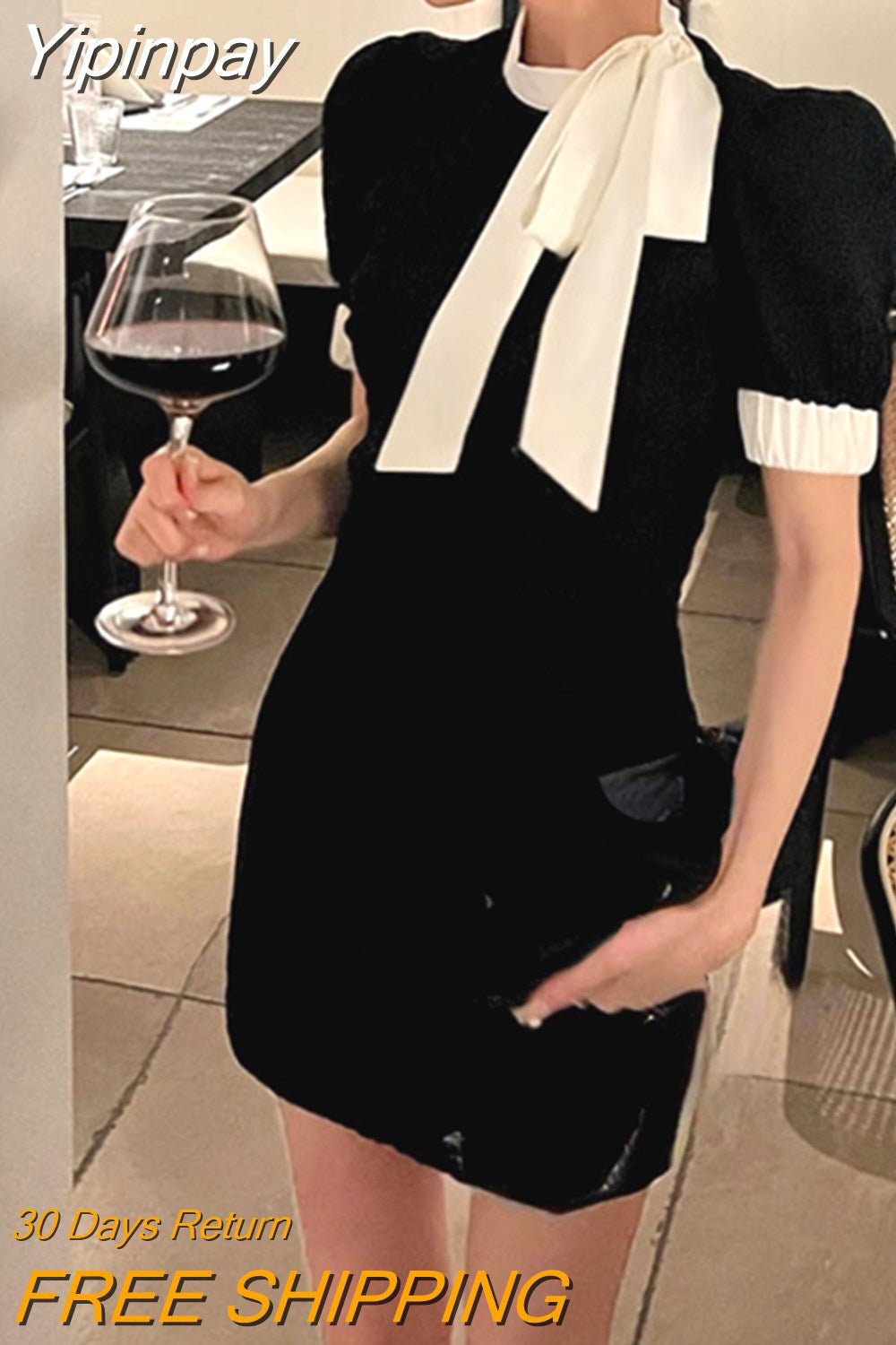 Yipinpay Slim Black Mini Dress Office Lady 2023 Summer Sexy Bodycon Elegant Dress Party Casual Short Sleeve Dress Korean Woman