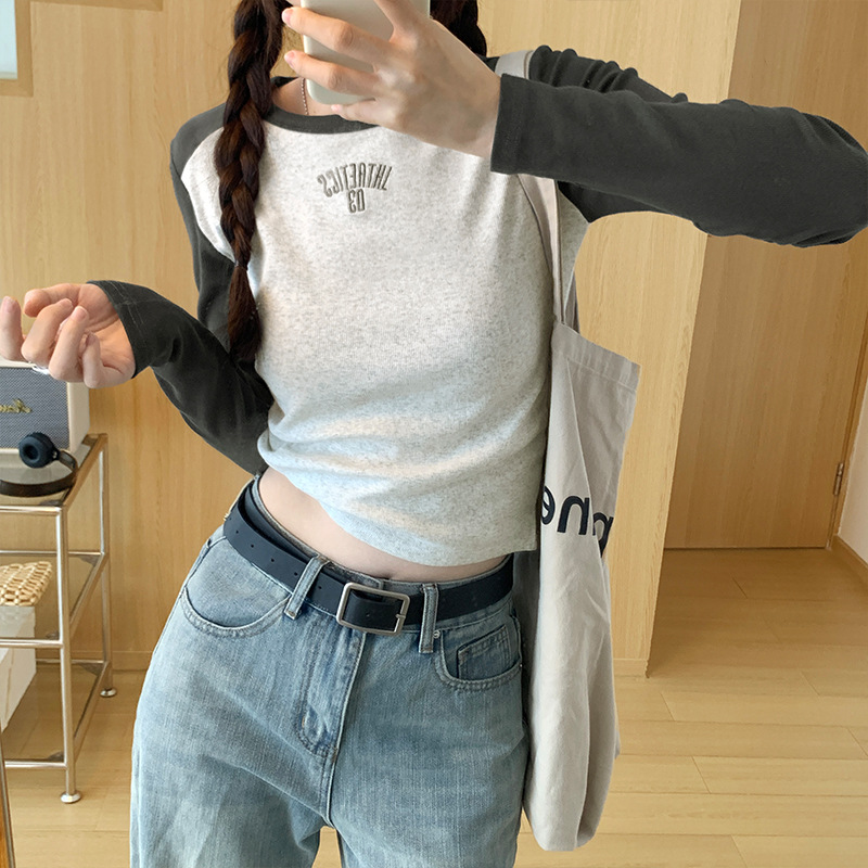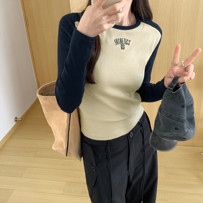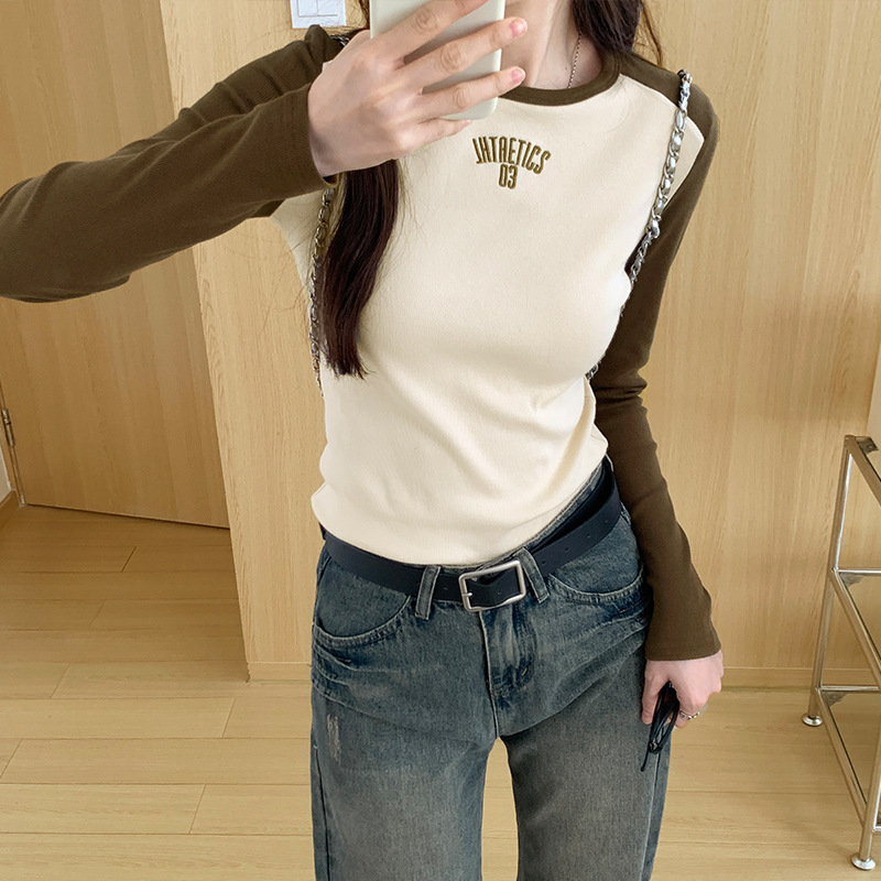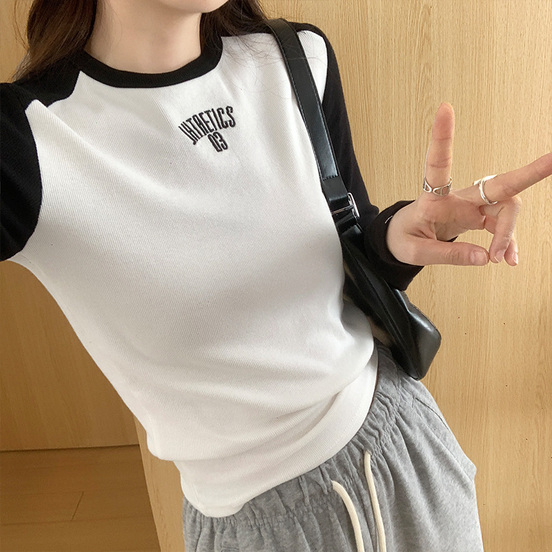 Yipinpay Slim Long-Sleeved T-Shirt Women's Early Autumn New Style Embroidered T-Shirt With Round Neck Blouse