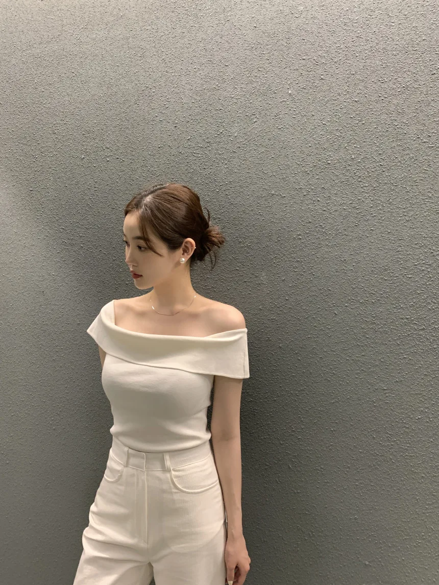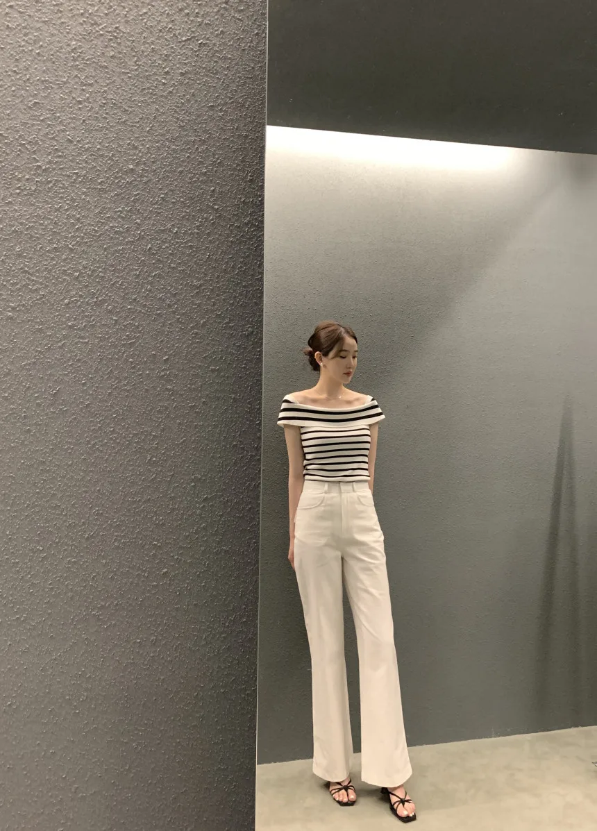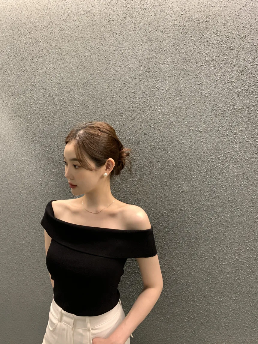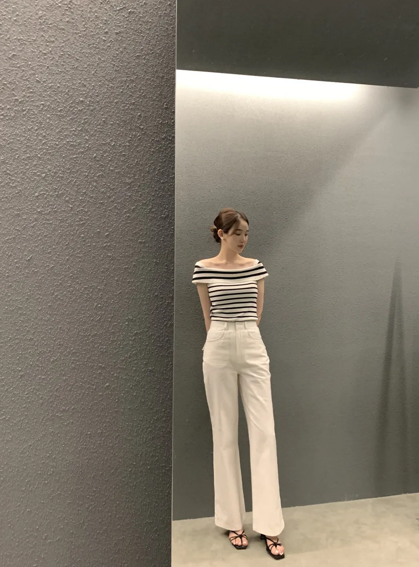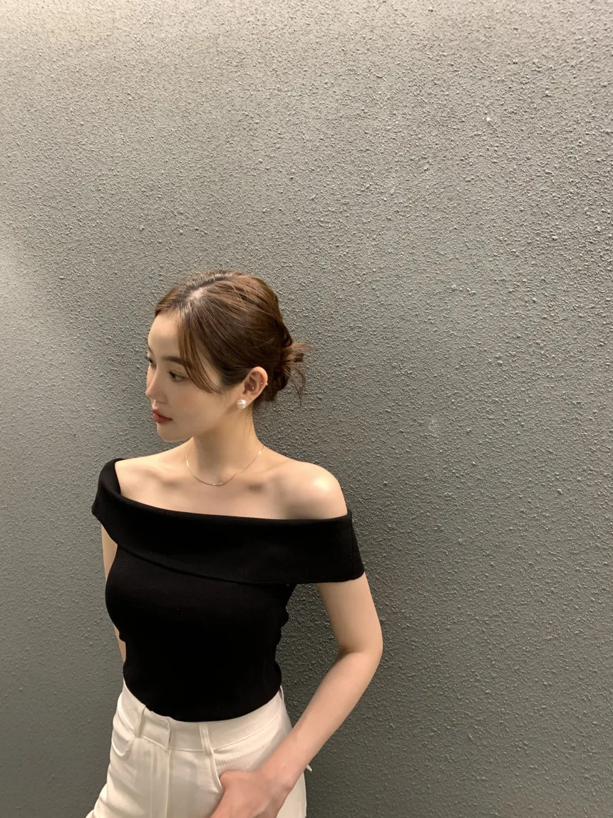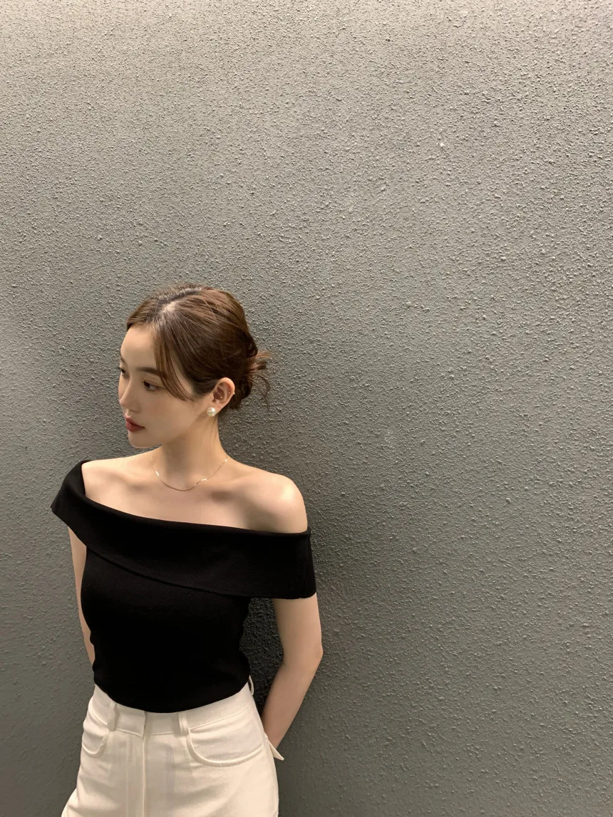 Yipinpay Slim Off The Shoulder Black Tshirt Summer Crop Top One Short Sleeve Striped Shirts for Women Y2k Top Ropa De Mujer Knit