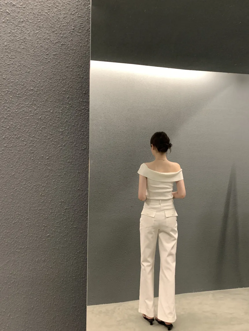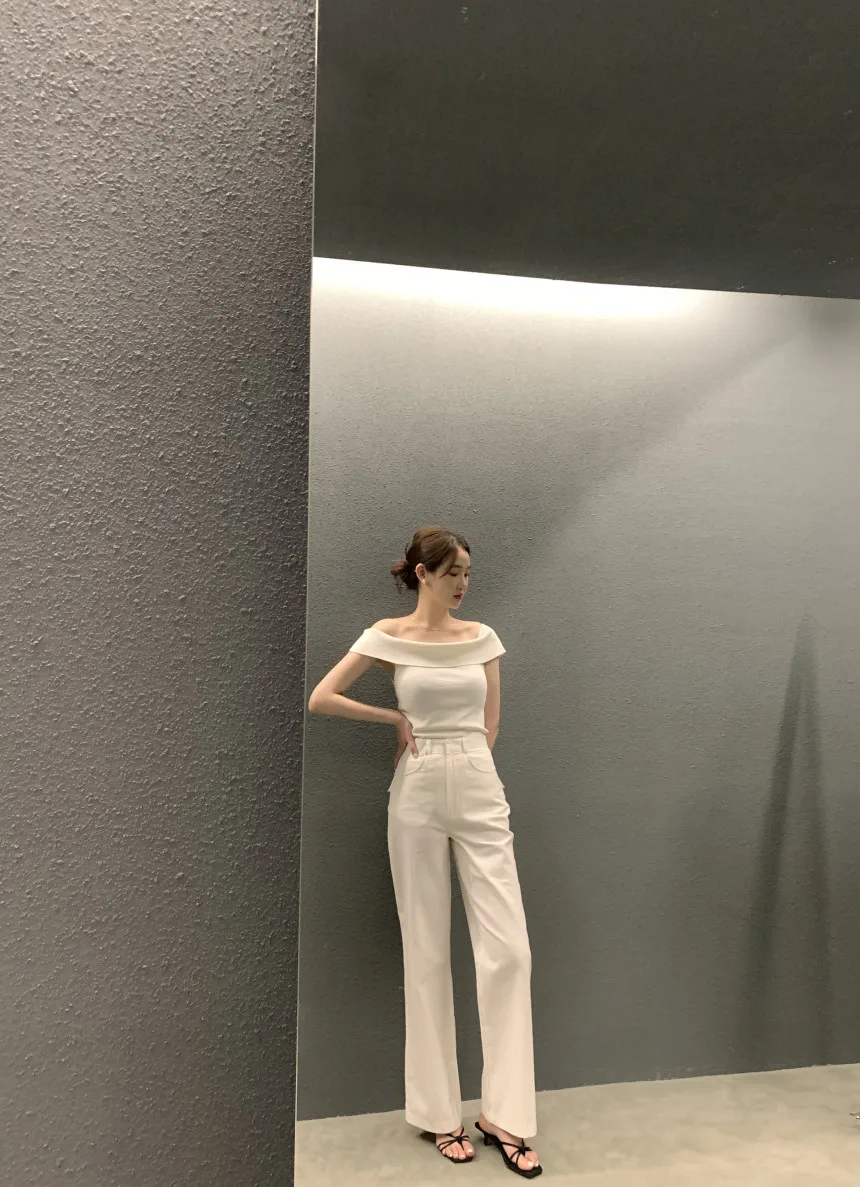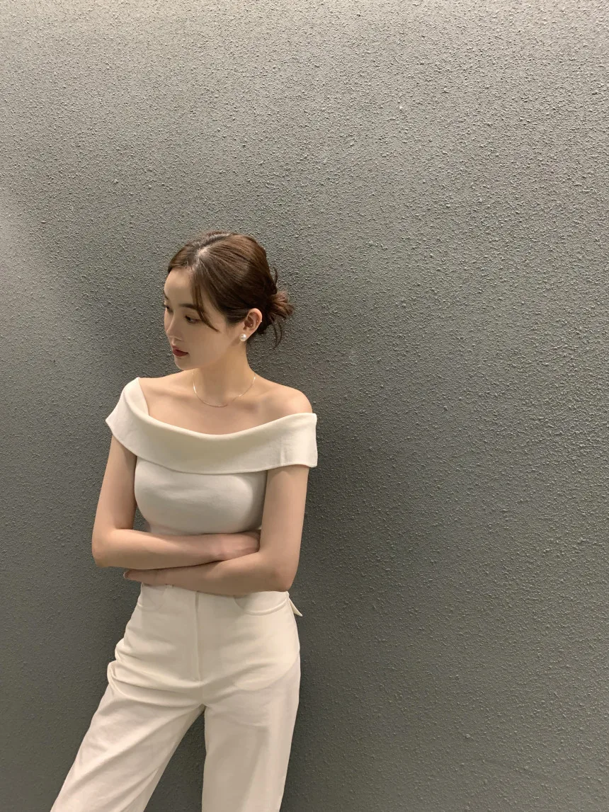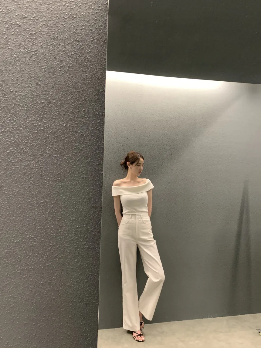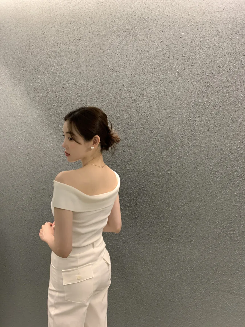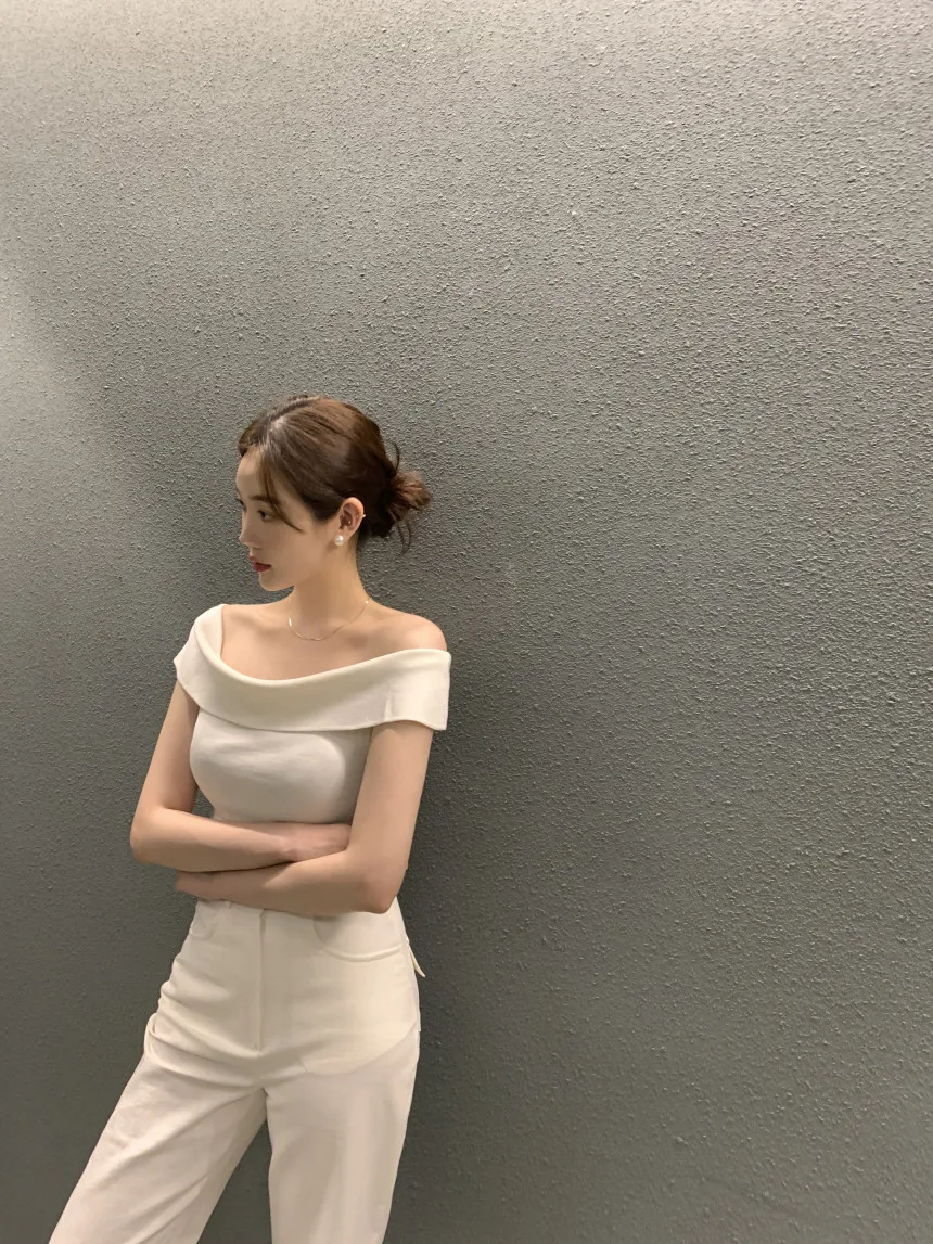 Yipinpay Slim Off The Shoulder Black Tshirt Summer Crop Top One Short Sleeve Striped Shirts for Women Y2k Top Ropa De Mujer Knit