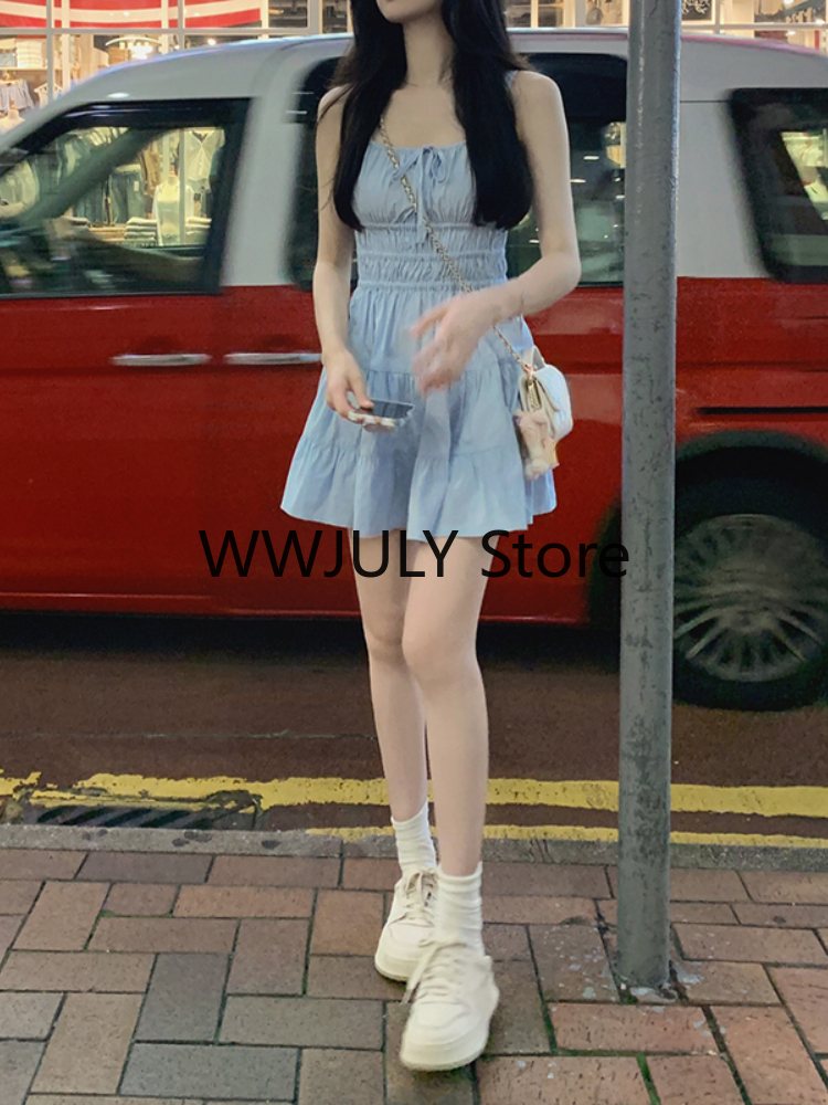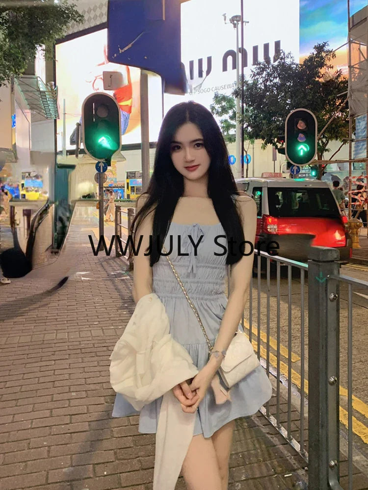 Yipinpay Slim Y2k Mini Dress Woman Short Party One Piece Dress Korean Fashion 2024 Summer Basic Pure Color Sweet Dress Casual Chic