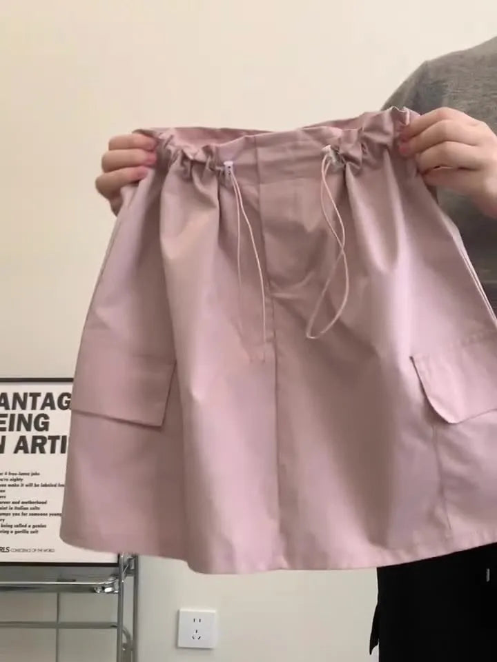 Yipinpay Spicy Girl American Retro Short Skirt for Women High Waist Slim Quick Drying Casual Drawstring Cargo Skirt Women Clothing