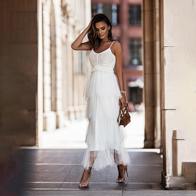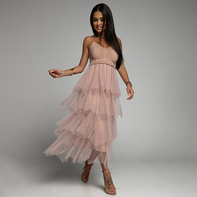 Yipinpay Spring And Summer New Sling Wool Gauze Spliced Dress INS Elegant Dress For Women