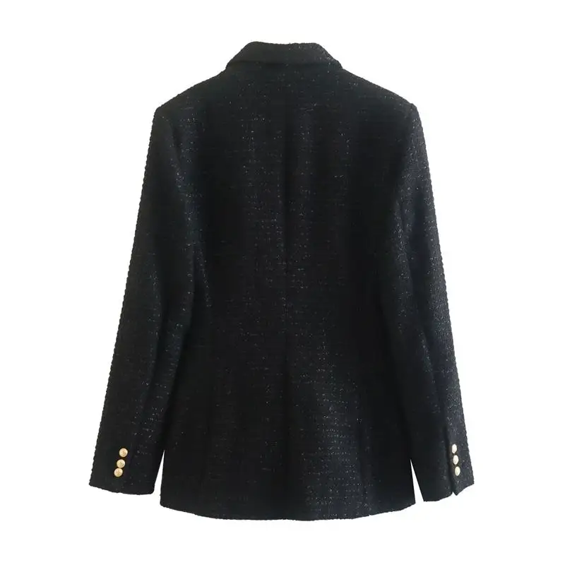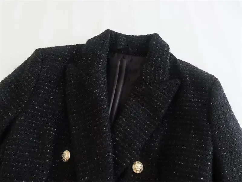 Yipinpay Spring Autumn Women Jacket Coat 2023 Fashion Double Breasted Tweed OL Blazer Vintage Long Sleeve Female Outerwear Chic Top