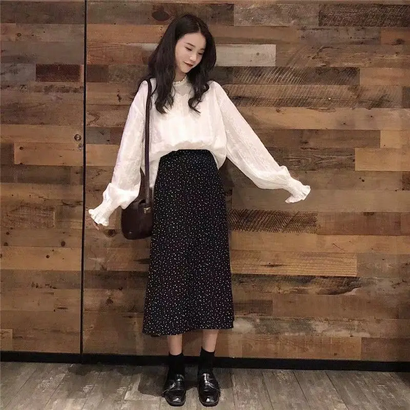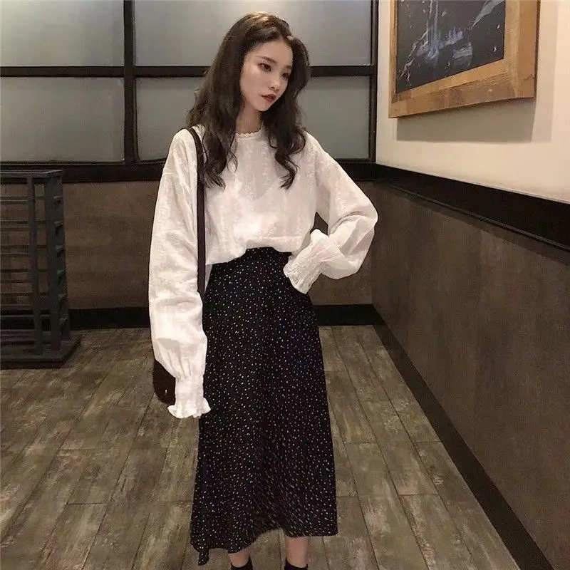 Yipinpay Spring Fashion Korea Style Loose Chiffon Women Blouse Lantern Sleeve Solid Lace White Ladies Shirts O Neck Female Clothing