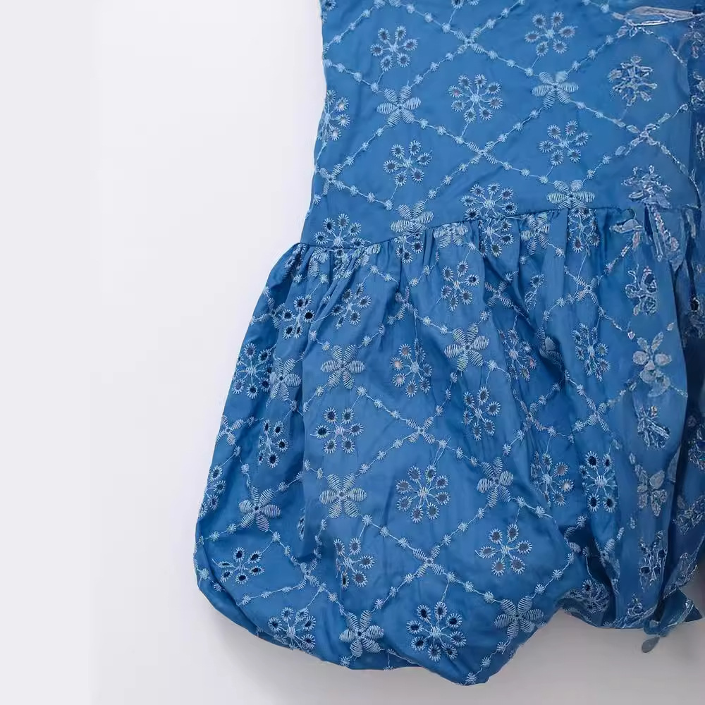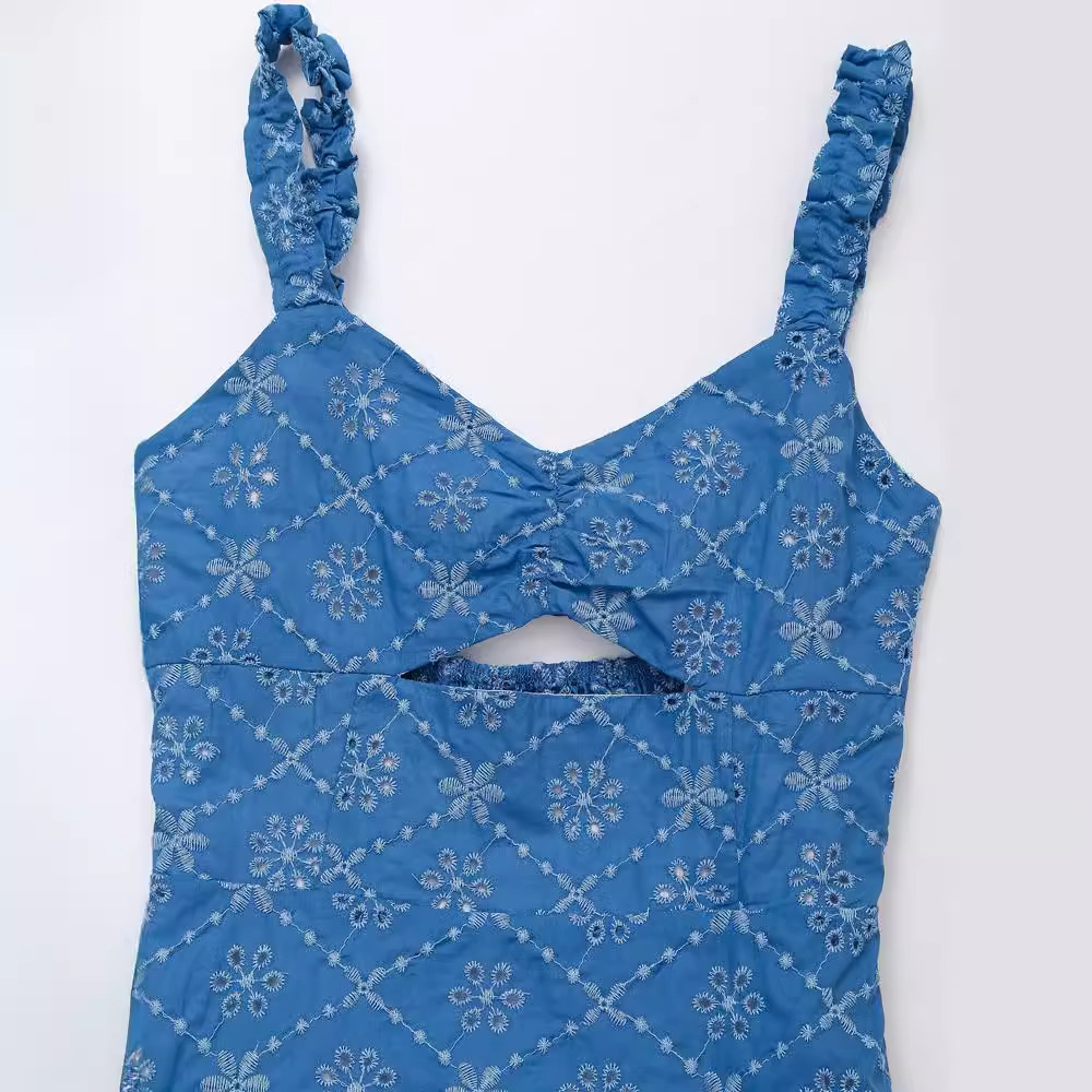 Yipinpay Spring Hollowed-Out Embroidered Mini Suspender Dress 3311665