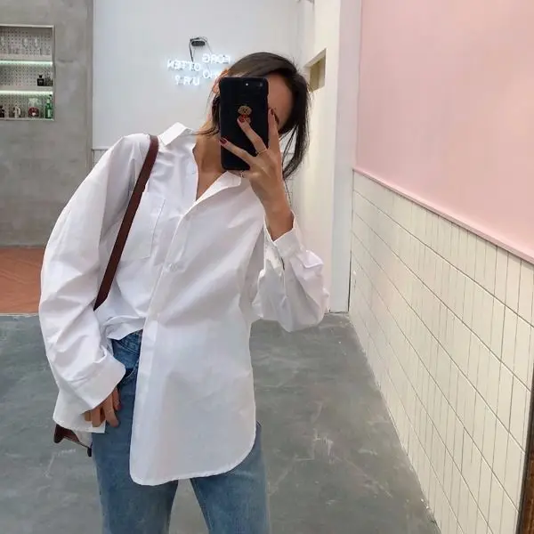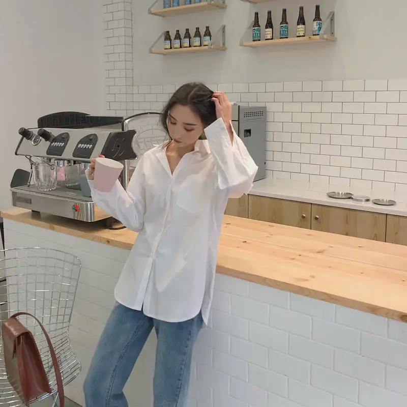 Yipinpay Spring New In Minimalist Full Sleeve Women White Basic Shirt Korea Style Button Up Pocket Oversize Woman Blouse Clothing