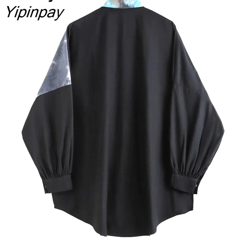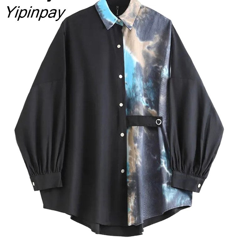 Yipinpay Spring Streetwear Long Sleeve Plus Size Women Shirt Tie Dye Print Oversize Ladies Blouse Loose Free Shipping Female Tops