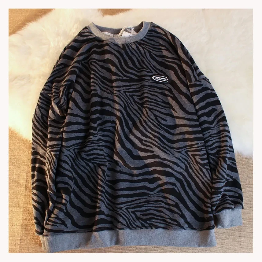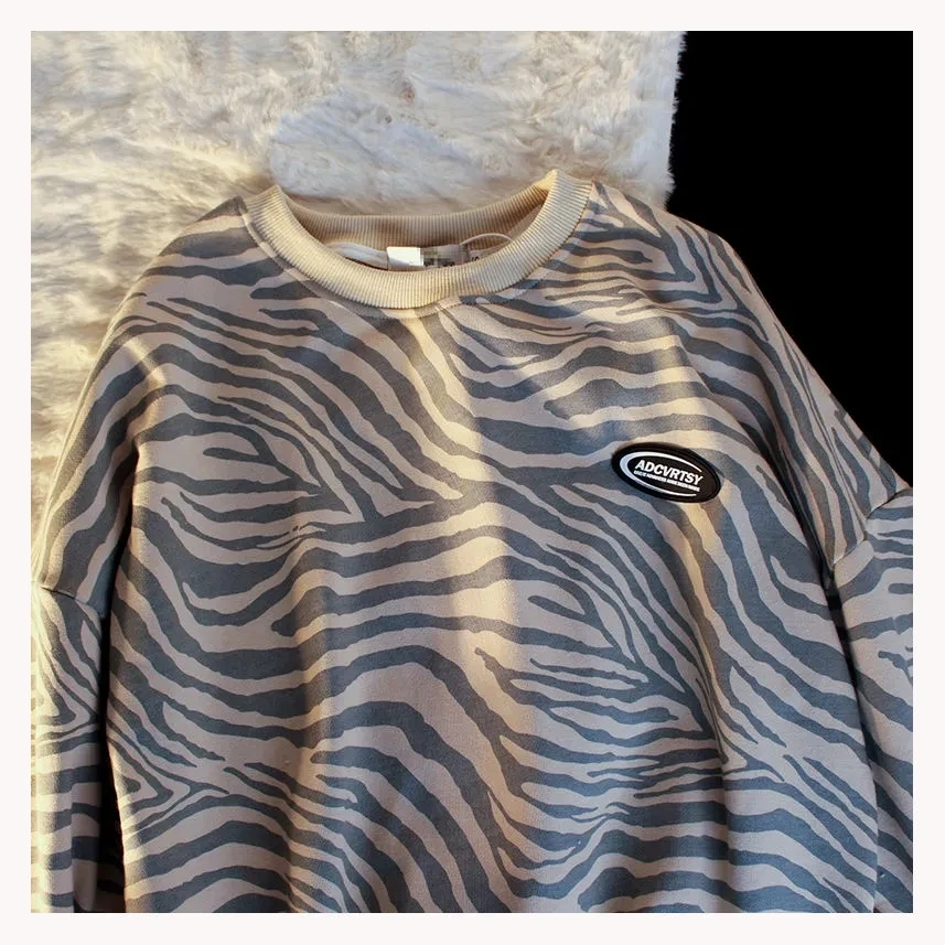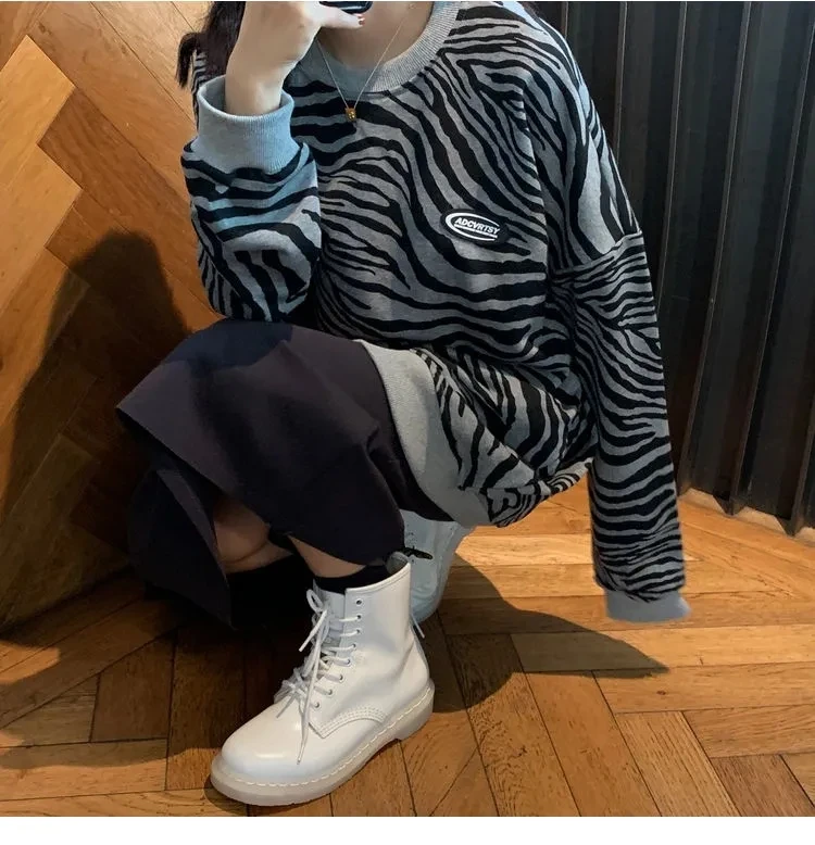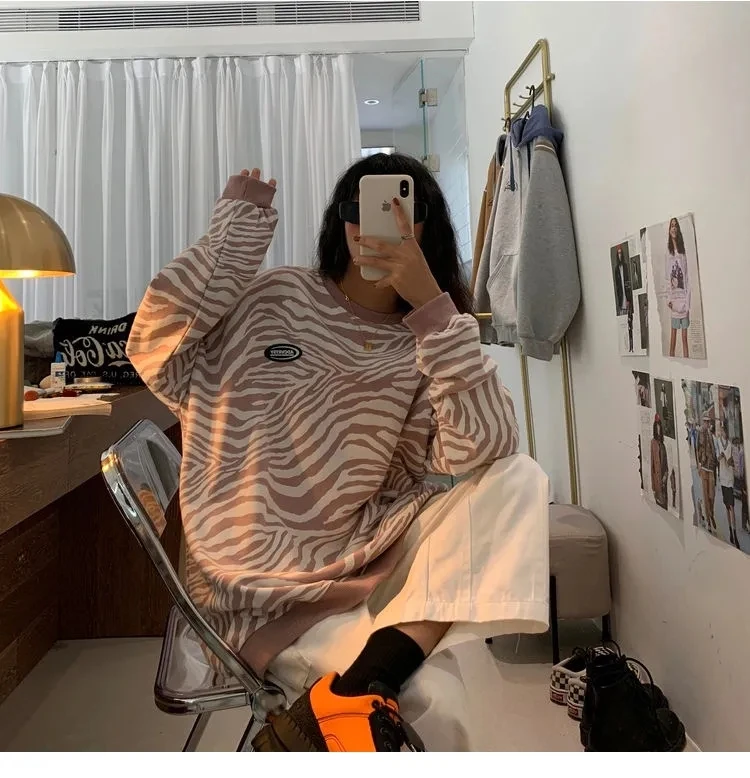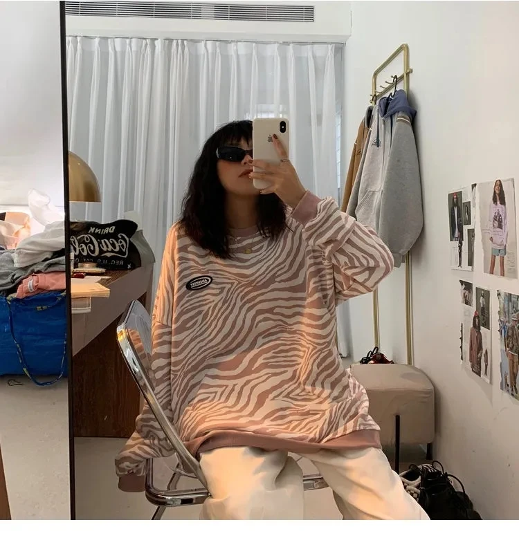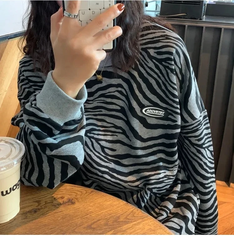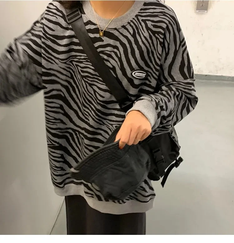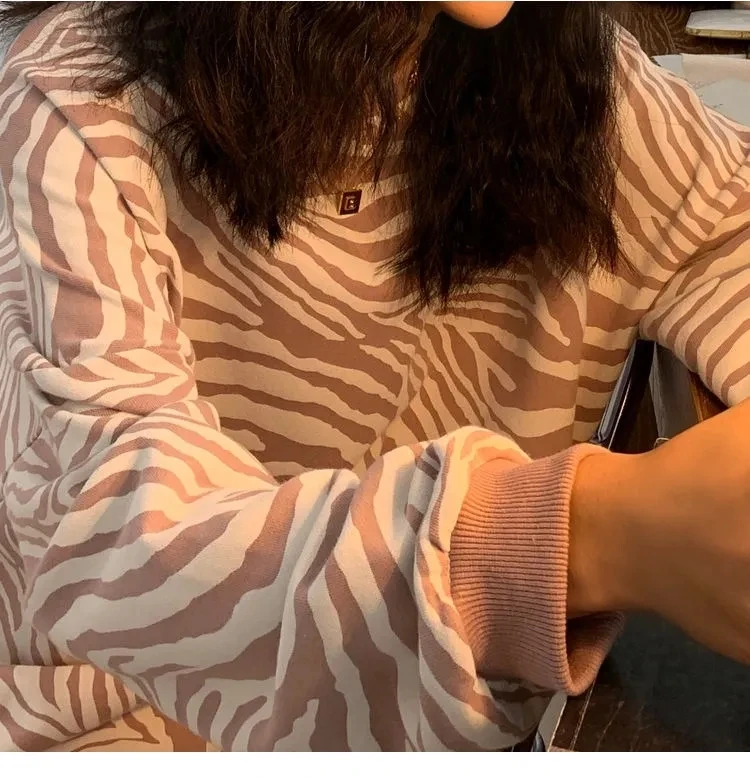Yipinpay Spring Streetwear Loose Long Sleeve Female Pullovers Zebra pattern Women's Sweatshirt Y2K Fashion Woman Hoodies Tops