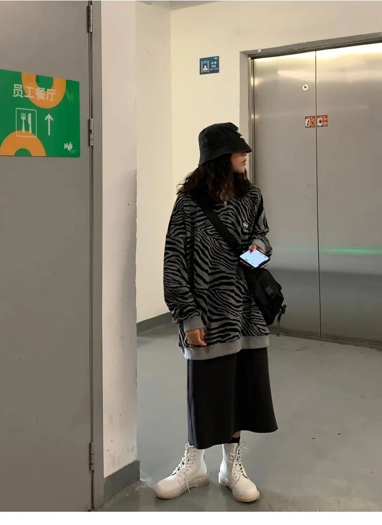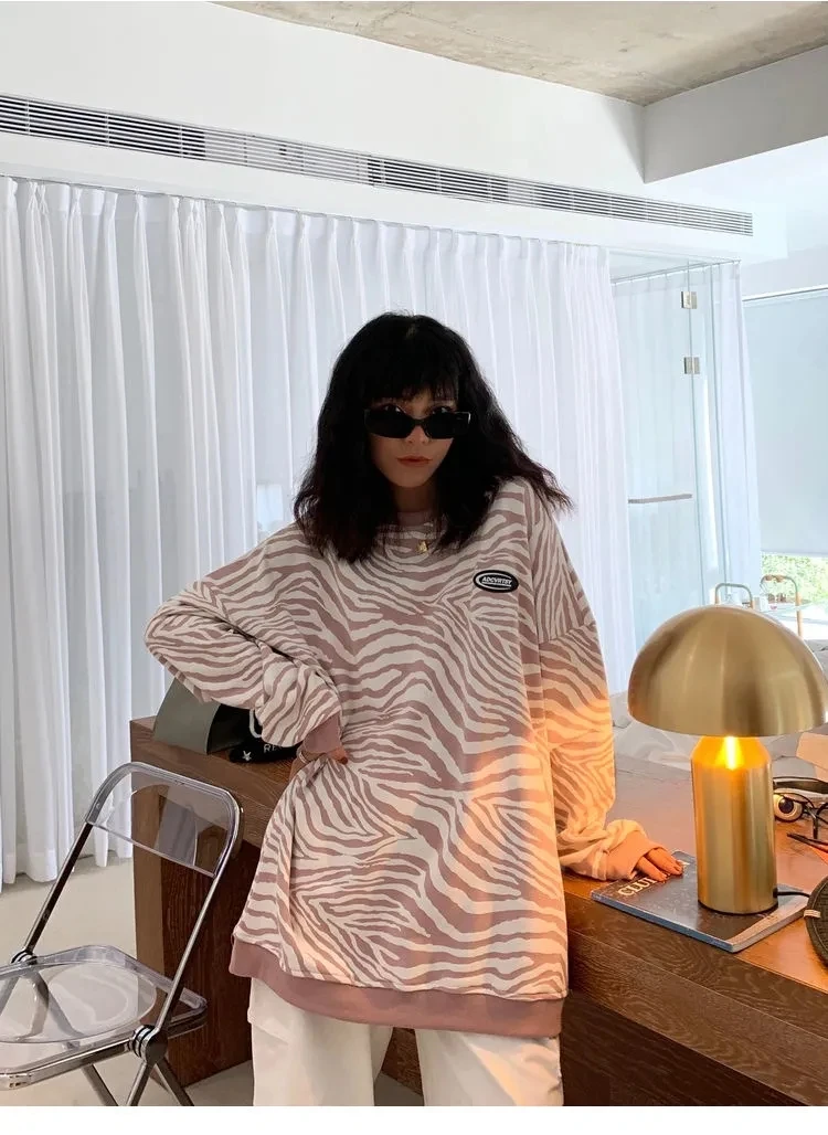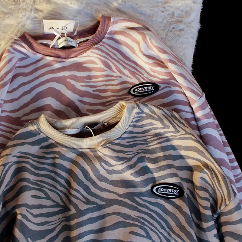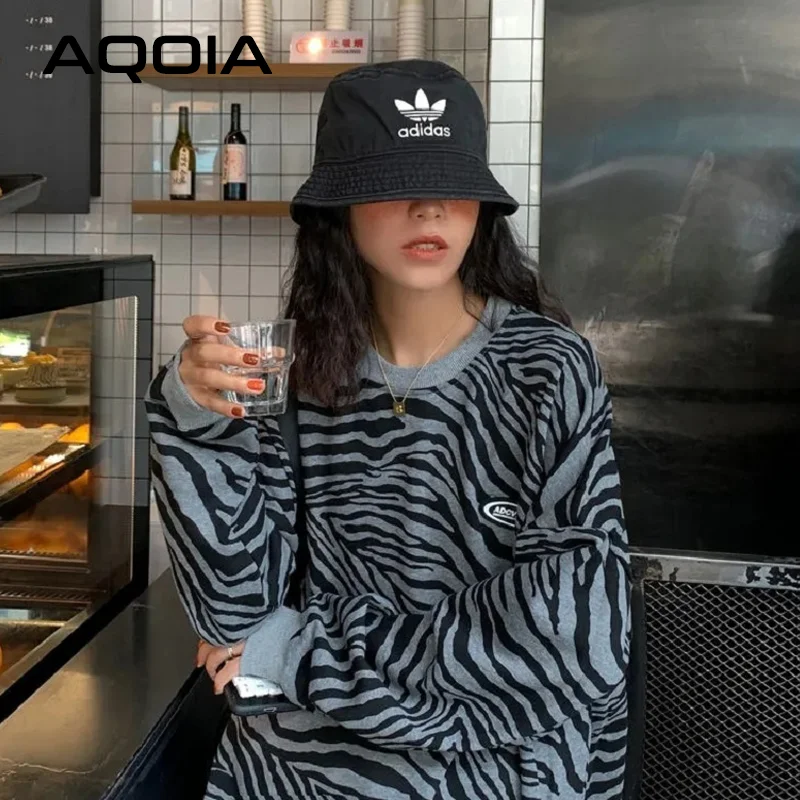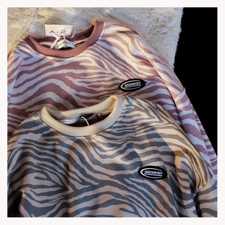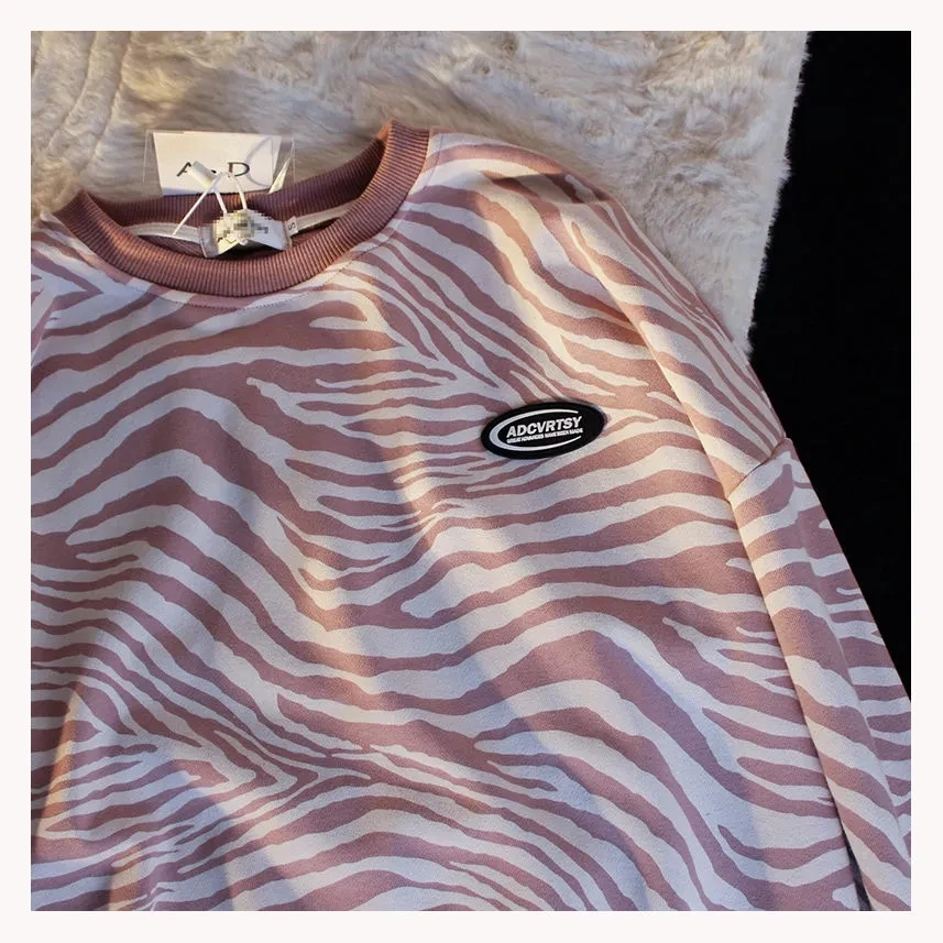Yipinpay Spring Streetwear Loose Long Sleeve Female Pullovers Zebra pattern Women's Sweatshirt Y2K Fashion Woman Hoodies Tops