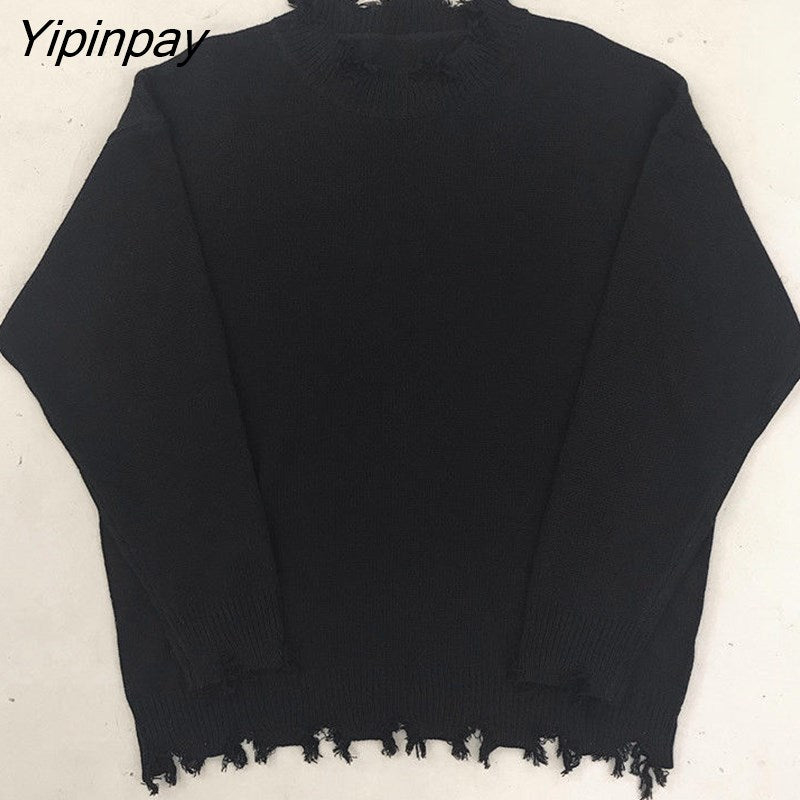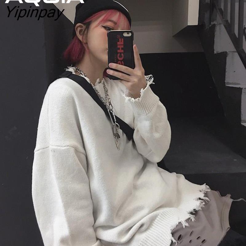Yipinpay Spring Streetwear Ripped Hole Women Knitted Sweaters Pullovers Long Sleeve Solid Color Loose Plus Size Sweater Women Tops