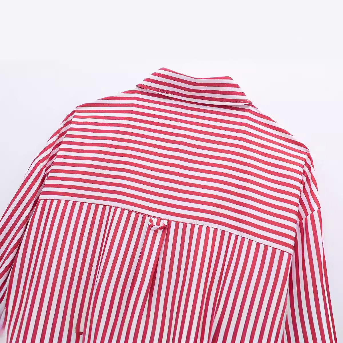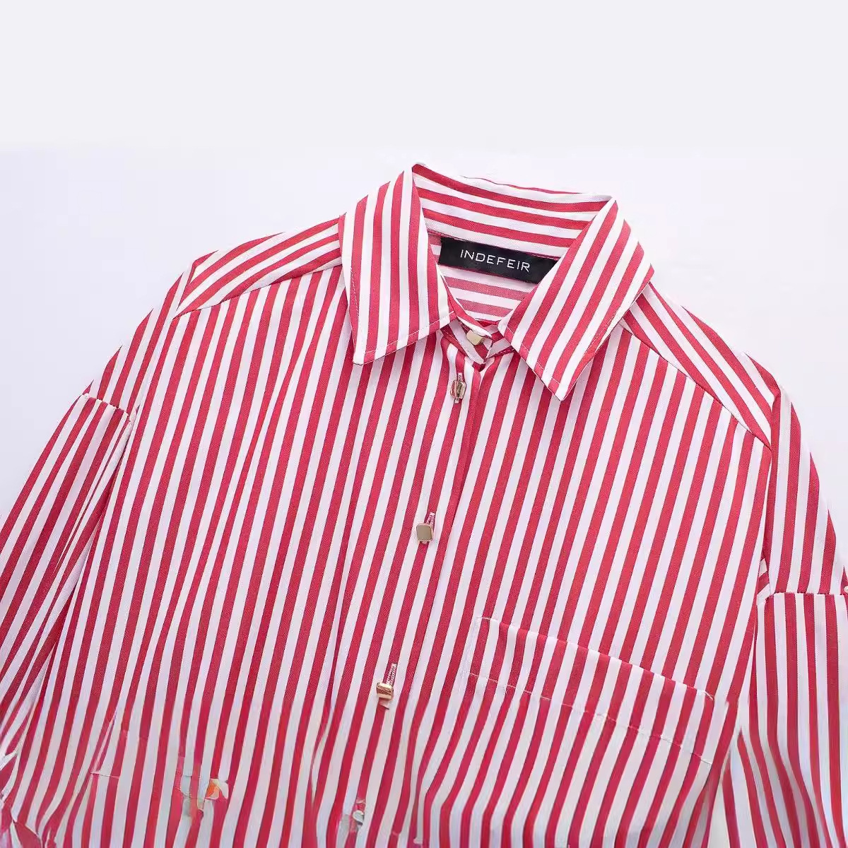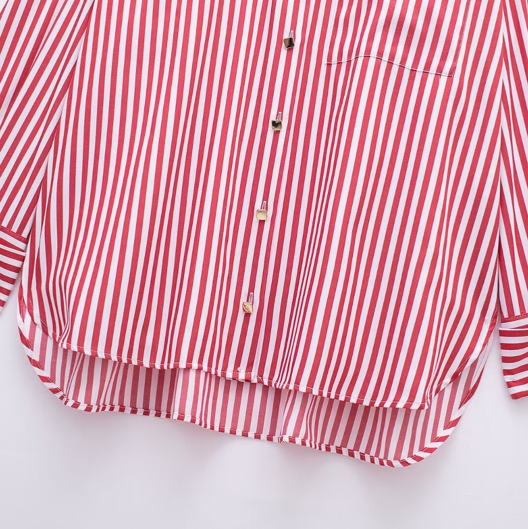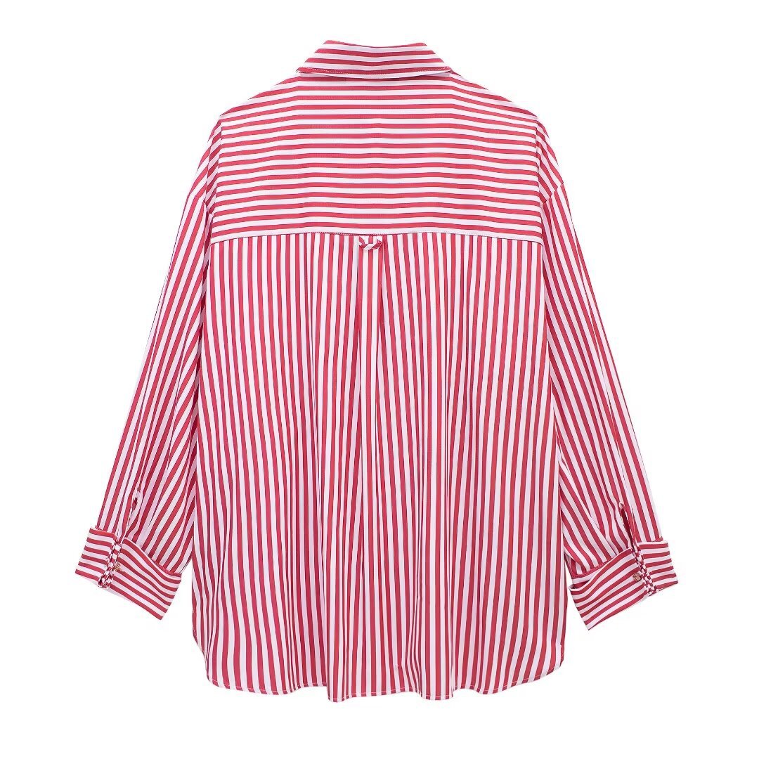 Yipinpay Spring Style Flanged Cuff Striped Loose Shirt 2731533