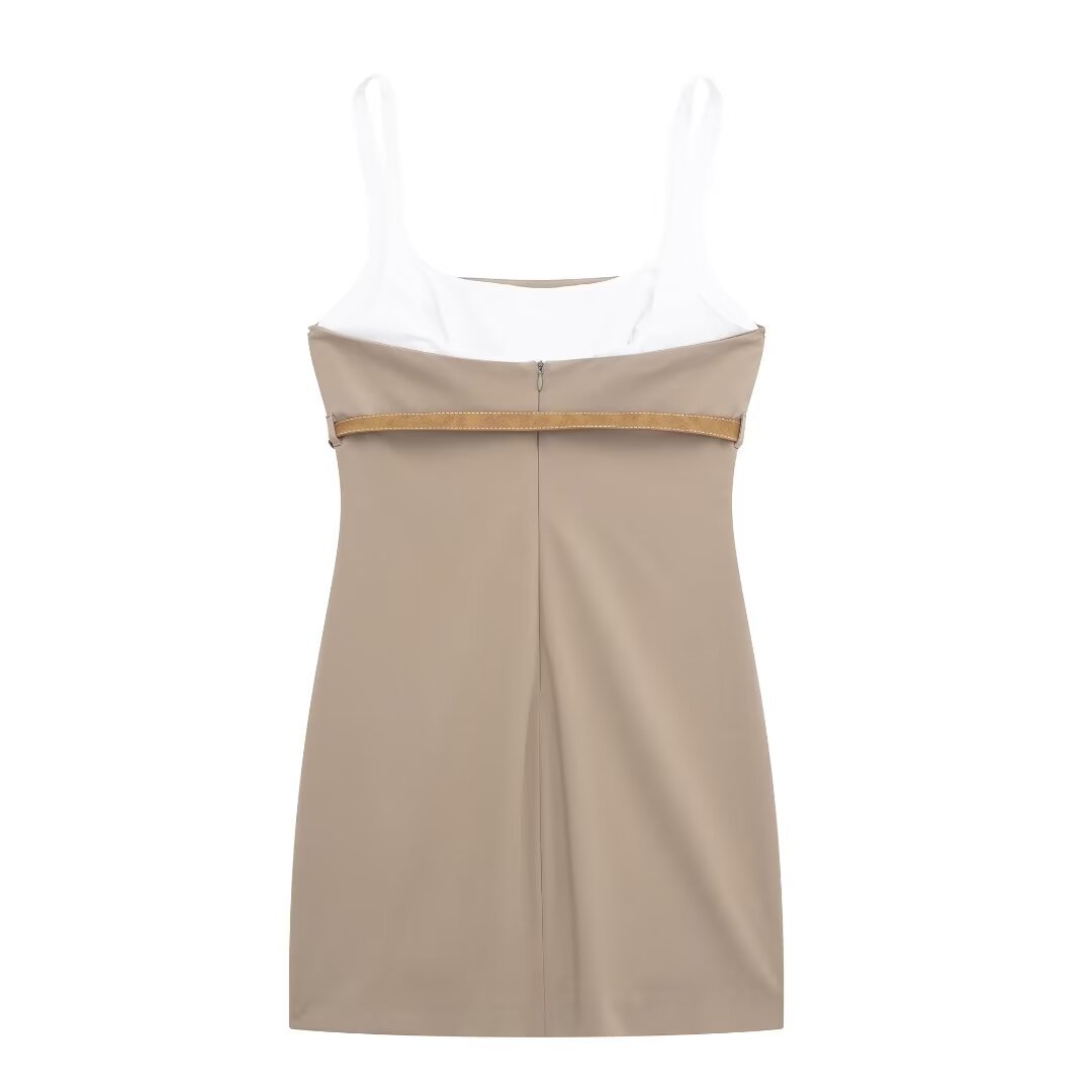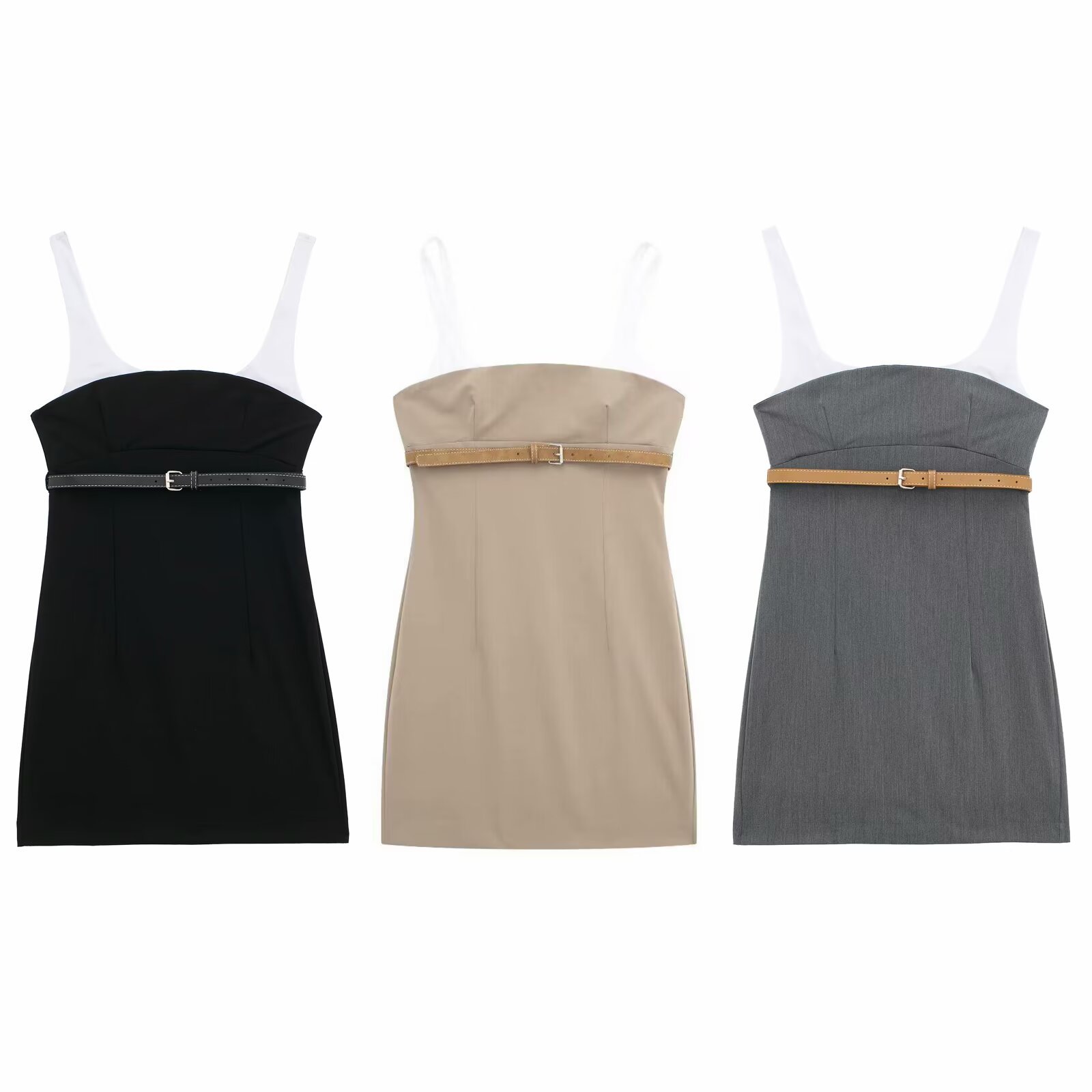 Yipinpay Spring Style With Belt Splicing Short Dress 3152308