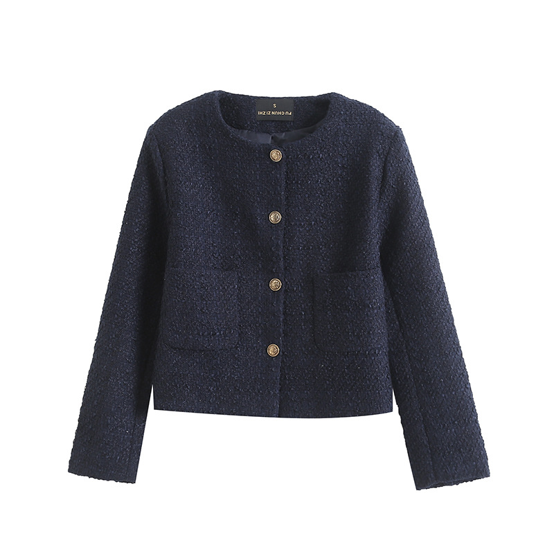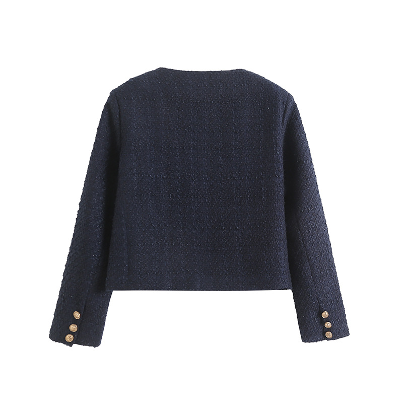 Yipinpay Spring Style Xiaoxiangfeng Gold Button Textured Short Coat