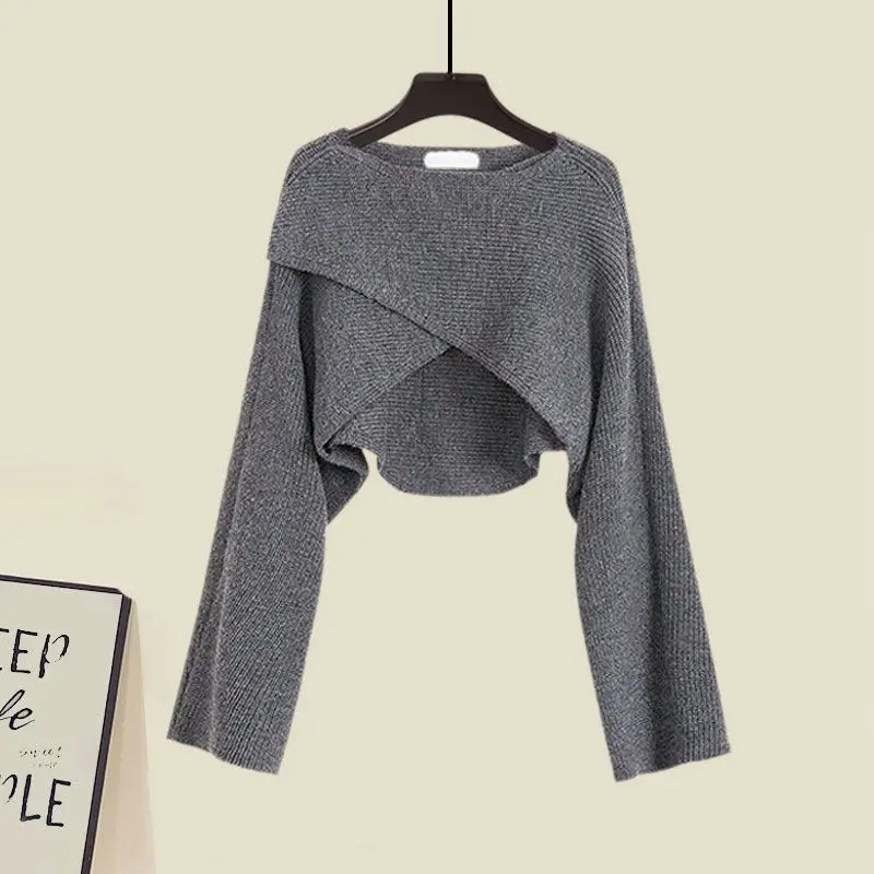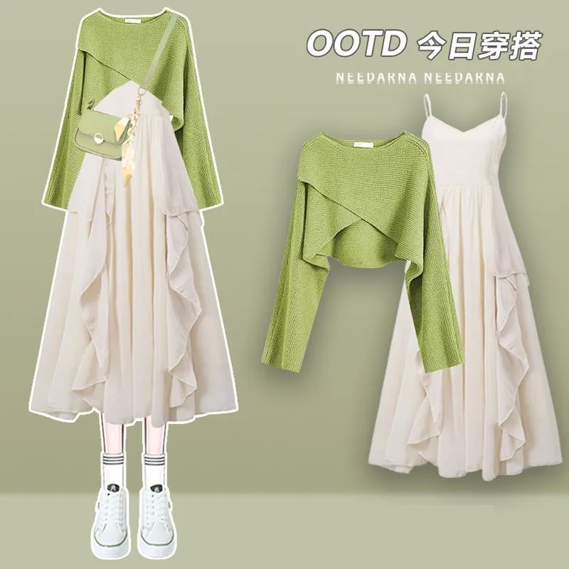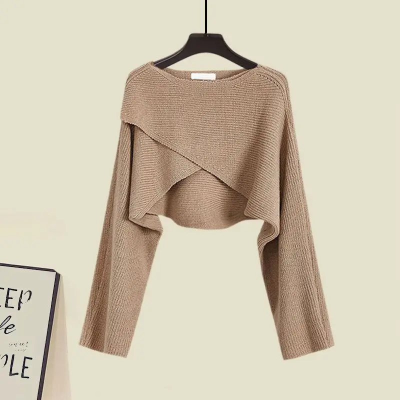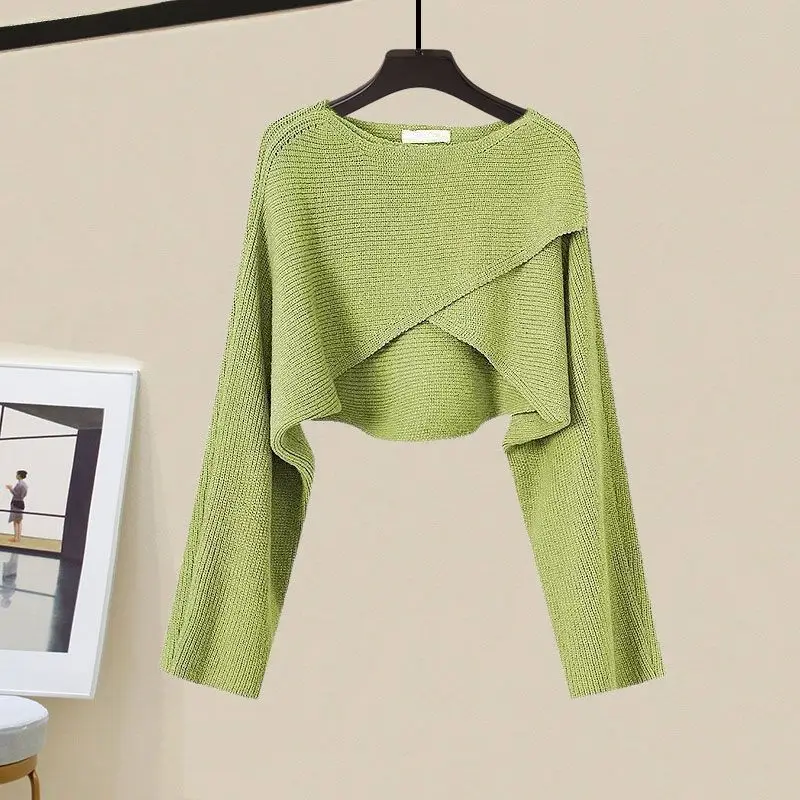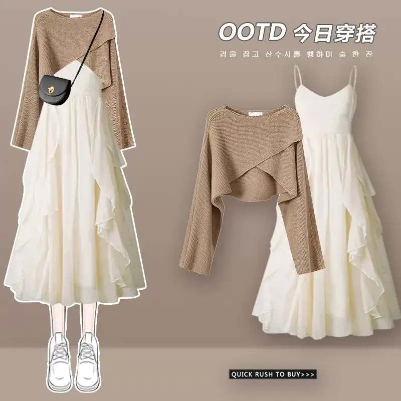 Yipinpay Spring/Summer New Dress Matching Set Women's Vintage Short Knitted Sweater Suspended Skirt Two Piece Female Clothing Suit
