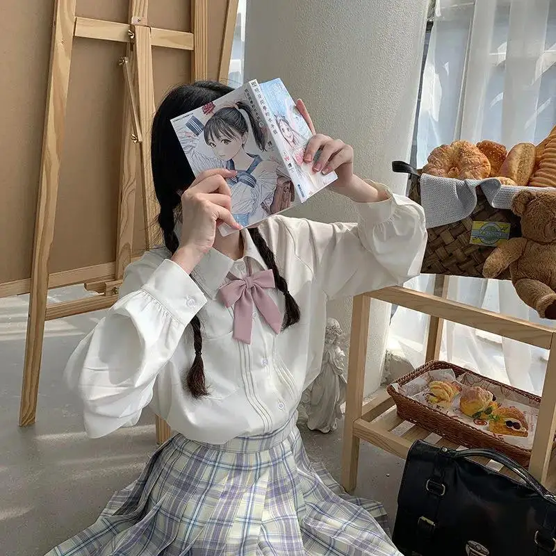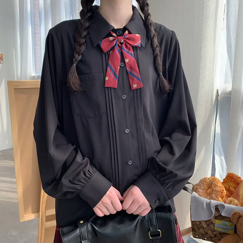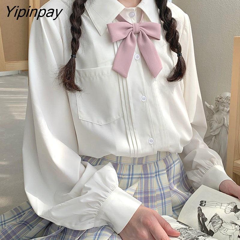 Yipinpay Spring Summer Women Blouses Loose Sweet JK tops Chiffon Thin Long sleeve Tops Preppy Style Oversize female Blouses Cute