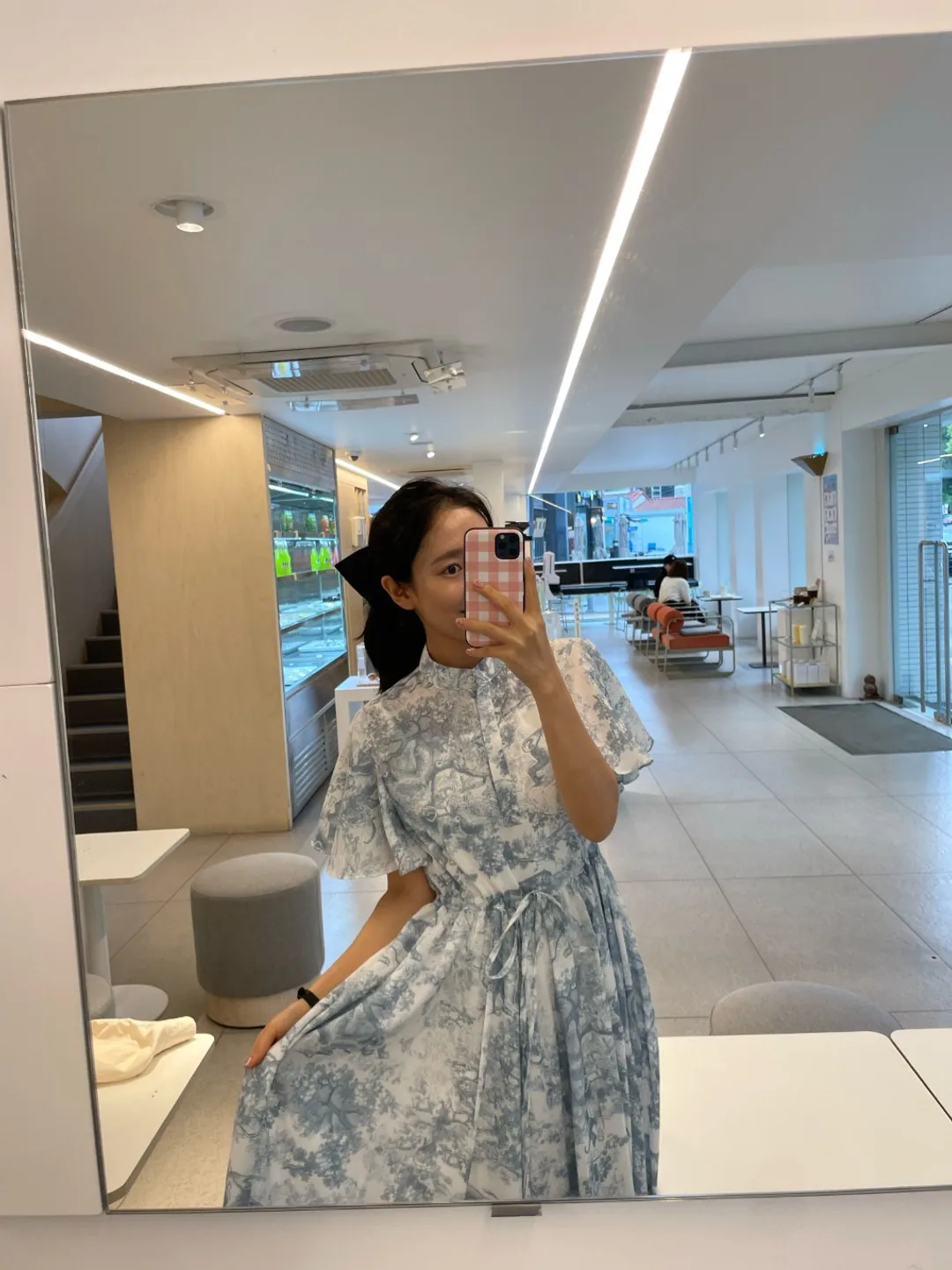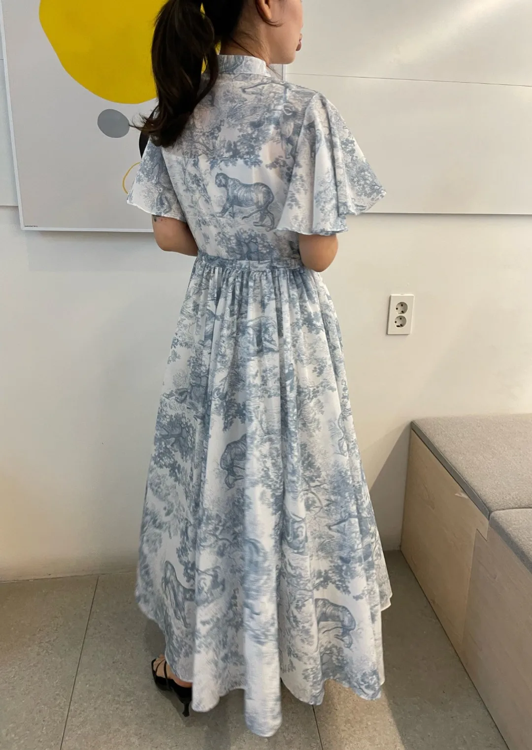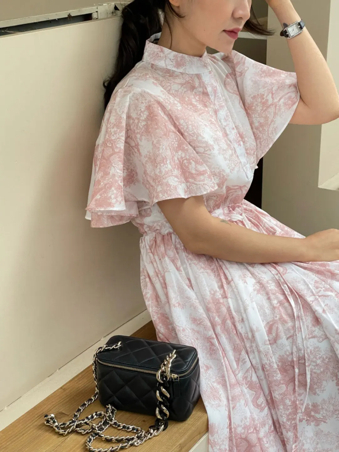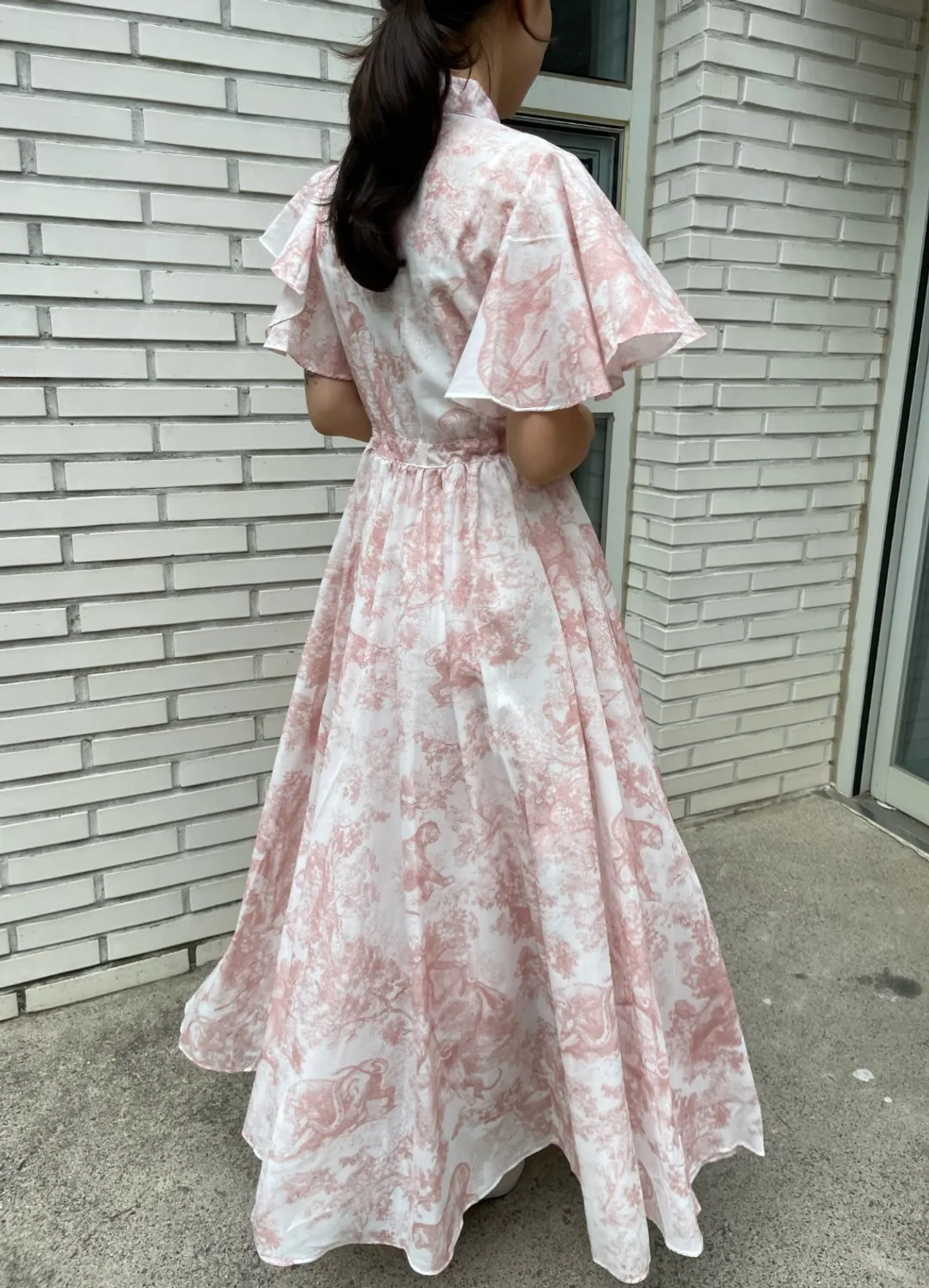 Yipinpay Stand Drawstring Lace Up Fly Sleeve Chiffon Dress Women Vestidos De Mujer Blue Print Ink Dresses Summer Robe