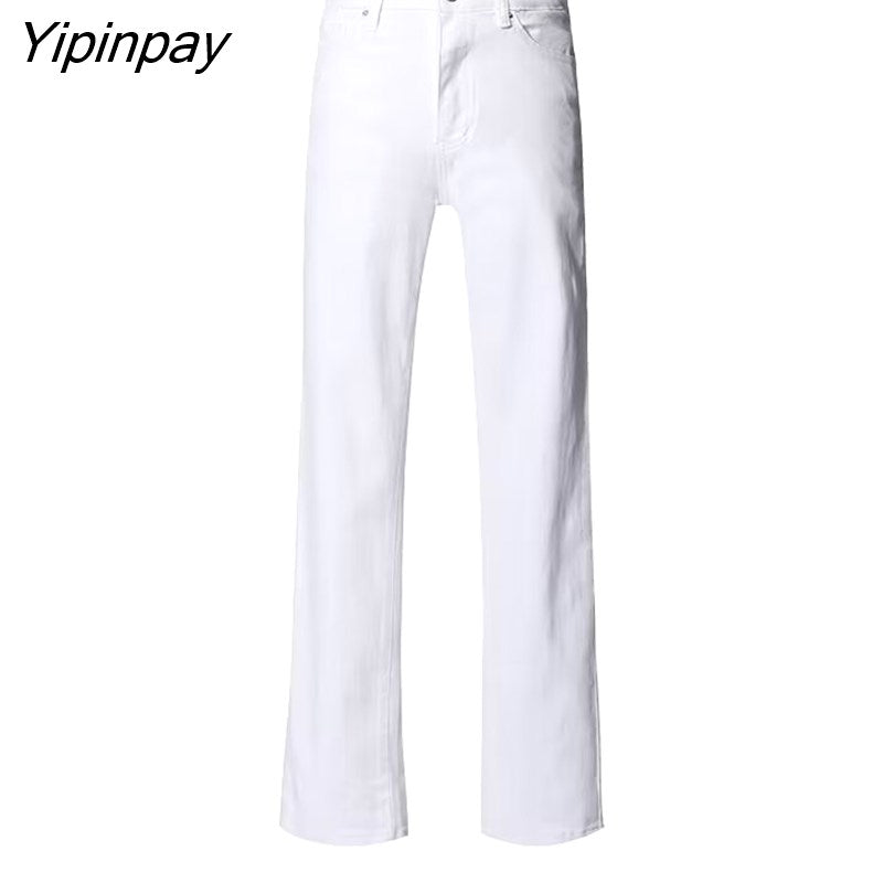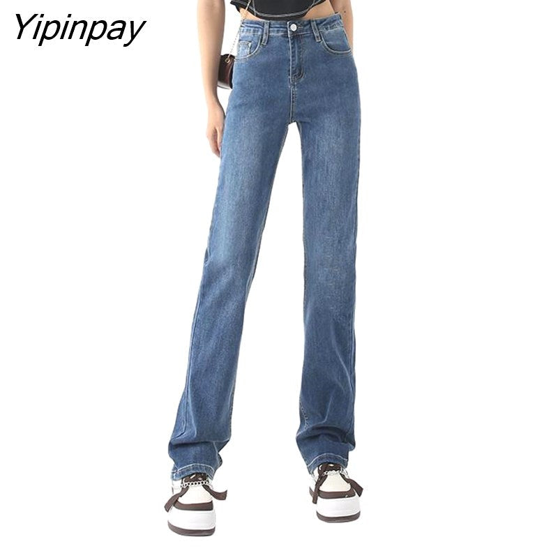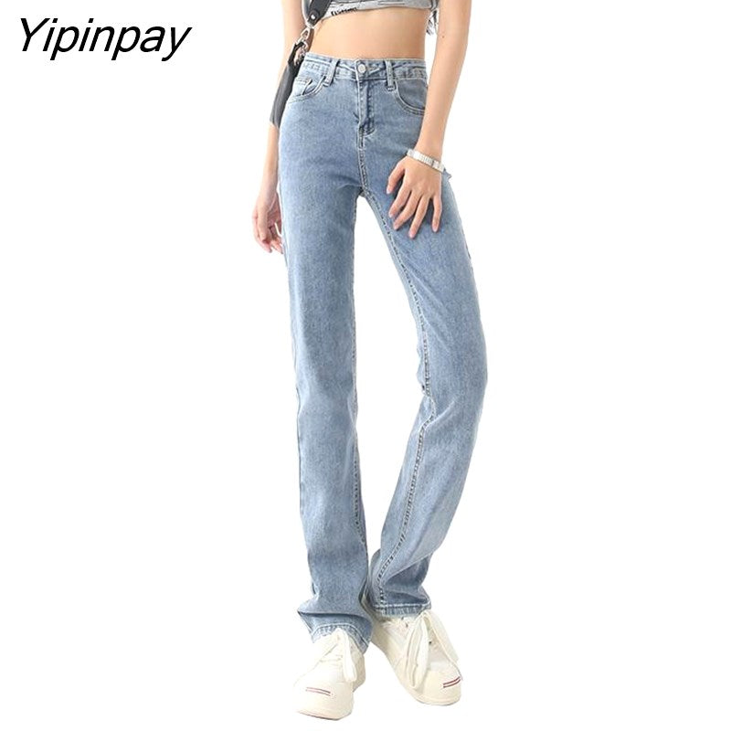 Yipinpay Straight High Waist Stretch Jeans Woman Casual Light Blue Jean Trousers Black Denim Pants Ladies