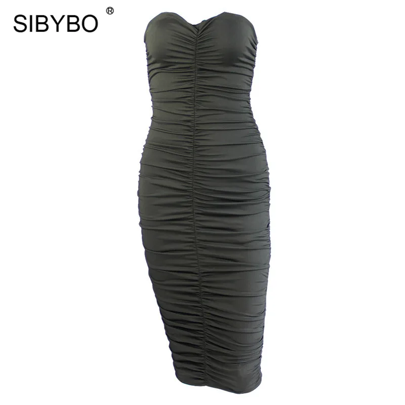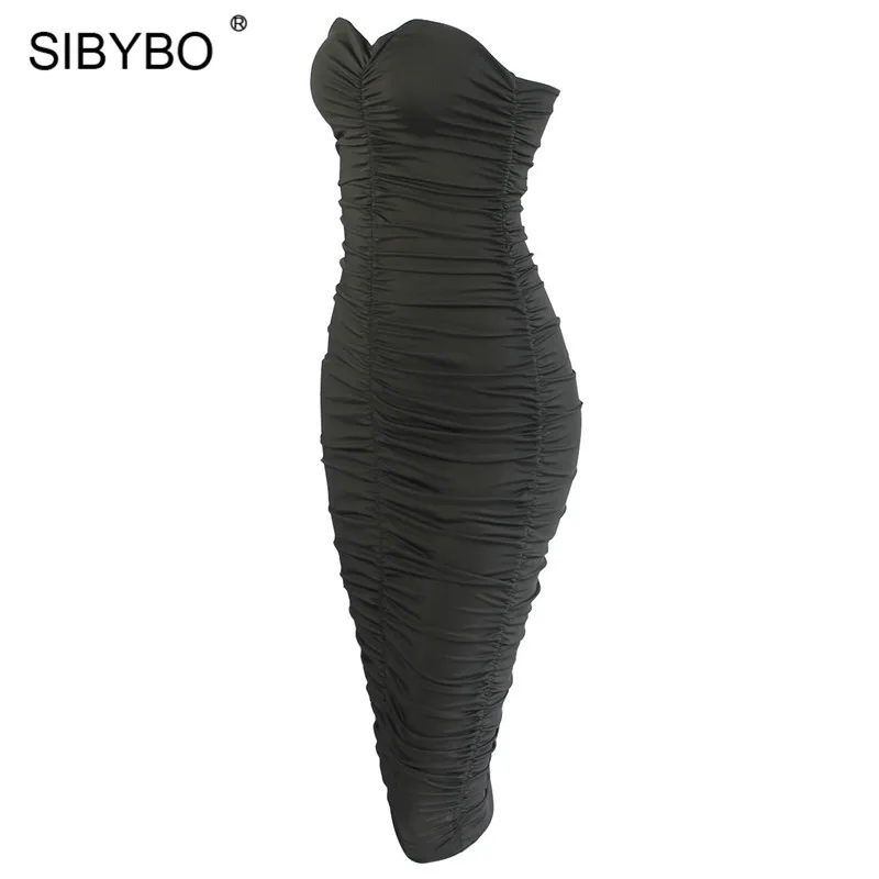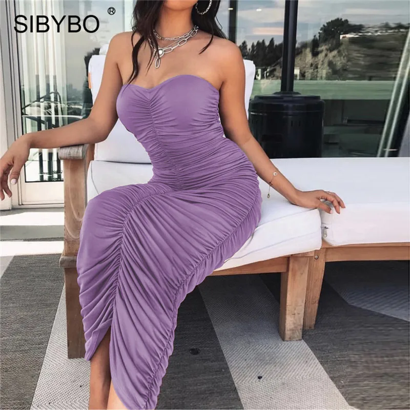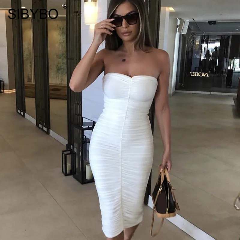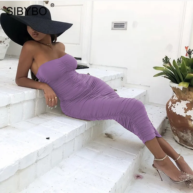 Yipinpay Strapless Pleated Sexy Bodycon Dress Off Shoulder Sleeveless Summer Party Dress Women Backless Beach Casual Women Dress