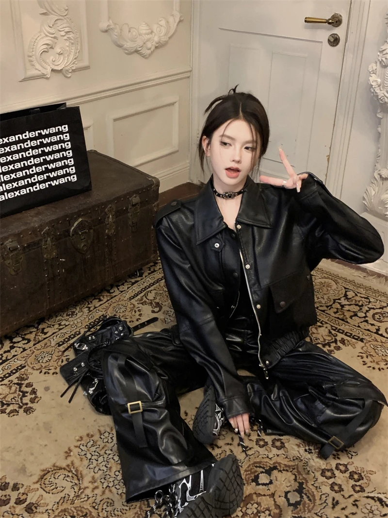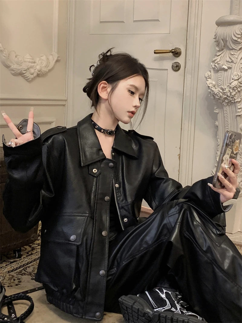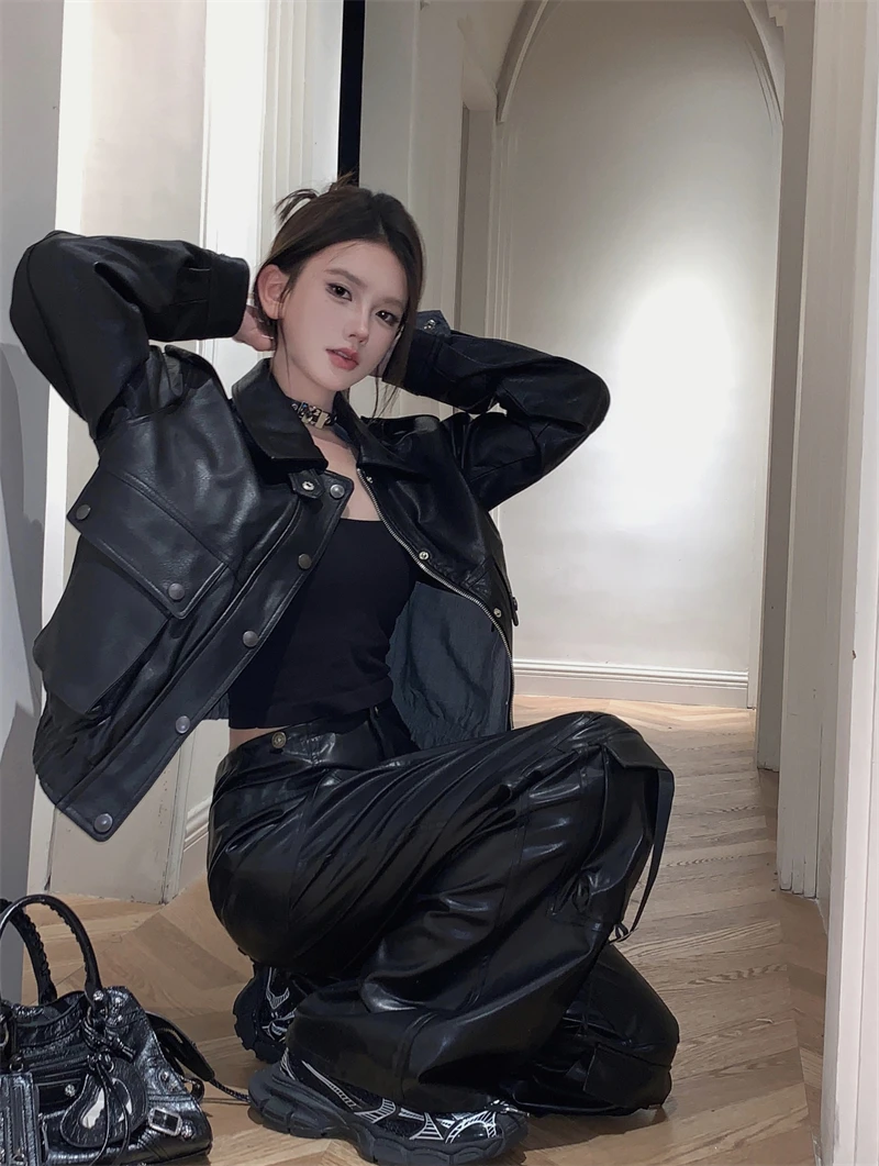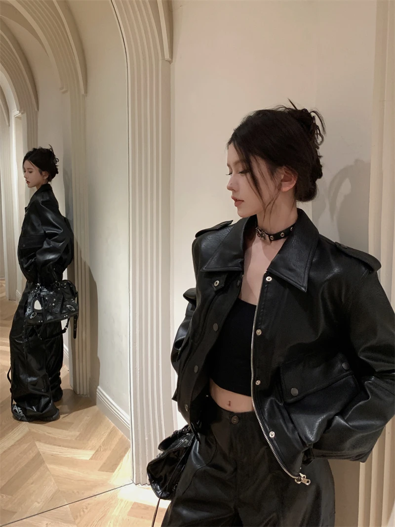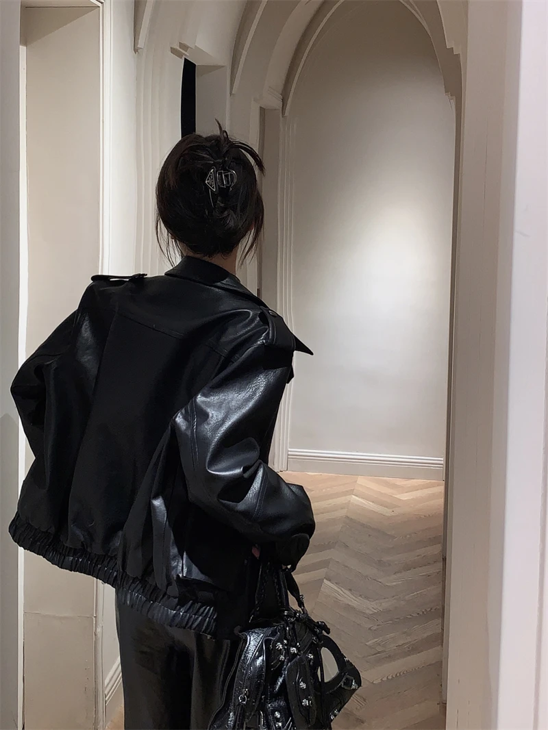 Yipinpay Streetwear Black Leather Jacket Women Winter Casual Moto Biker Zipper Leather Jacket Fashion Trench High Street Faux Coat