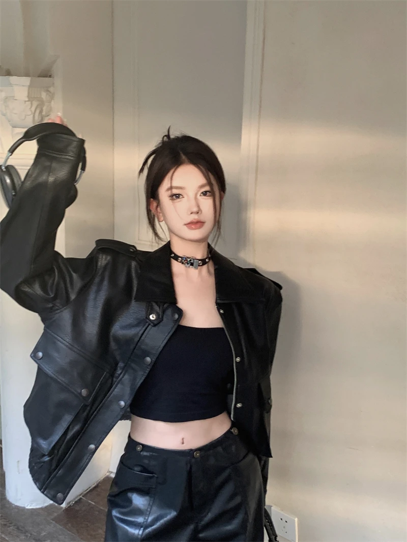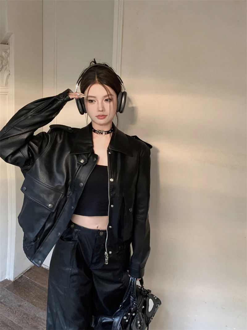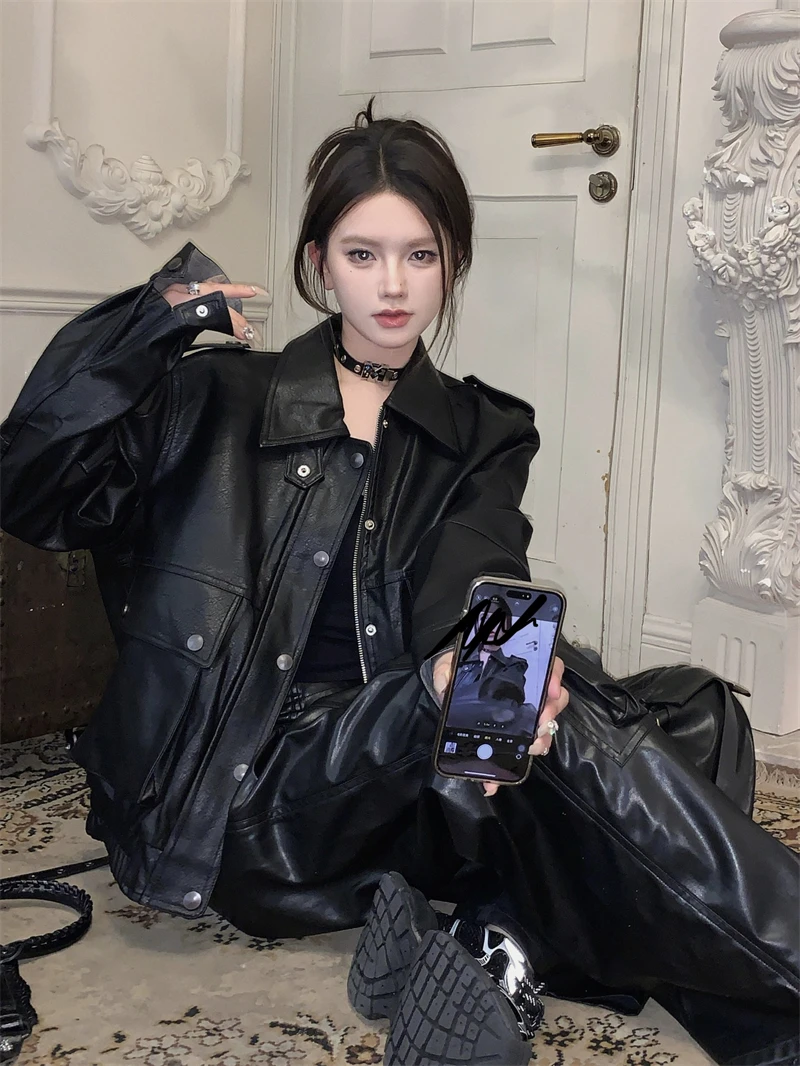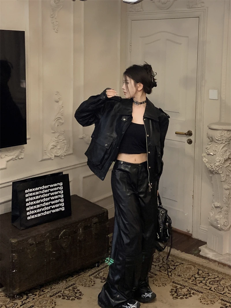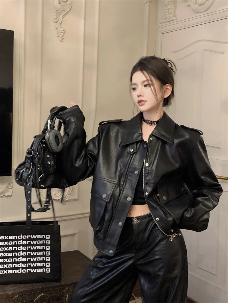 Yipinpay Streetwear Black Leather Jacket Women Winter Casual Moto Biker Zipper Leather Jacket Fashion Trench High Street Faux Coat