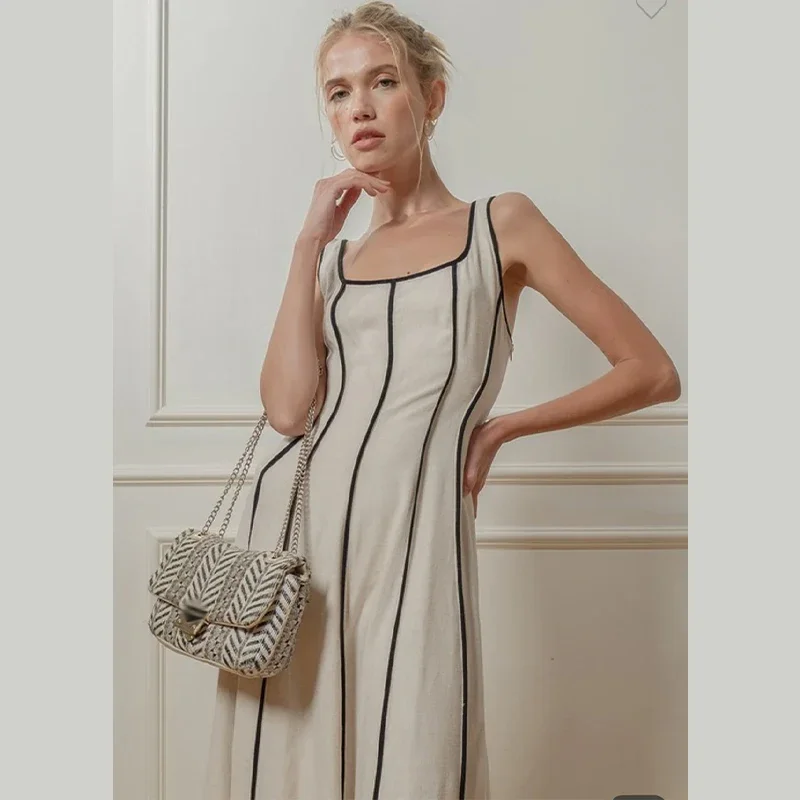 Yipinpay Stripe Patchwork Maxi Dress For Women Square Collar Backless Sleeveless Midi Dress 2024 Chic Ladies Beach Party Vestidos