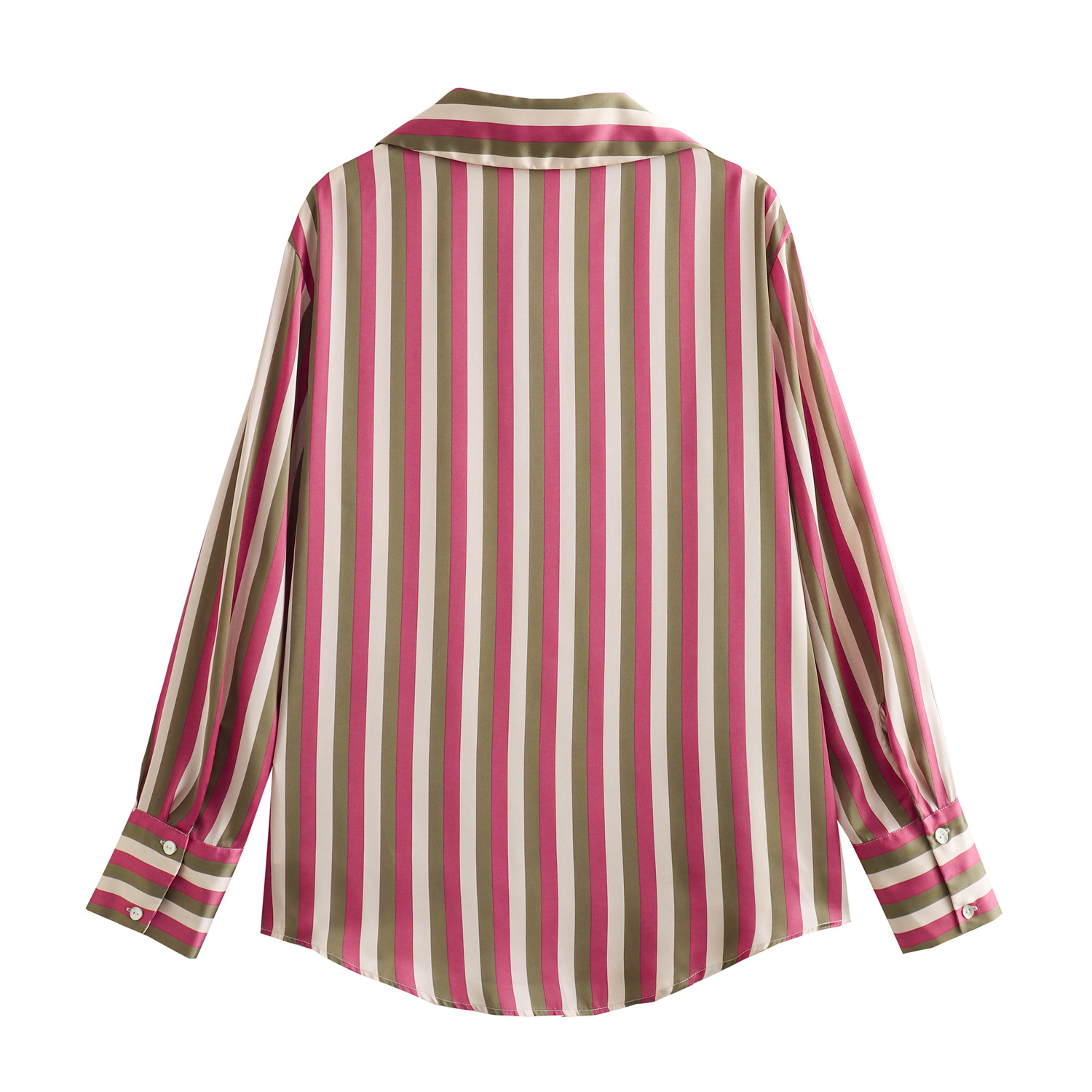 Yipinpay Striped Satin Casual Shirt 8160562 In Autumn