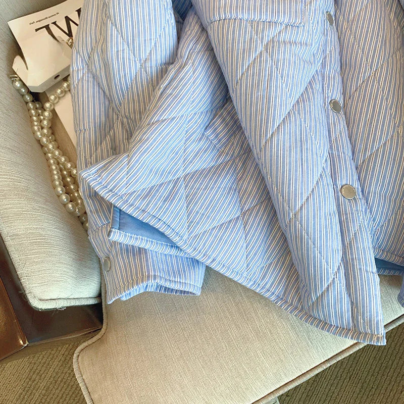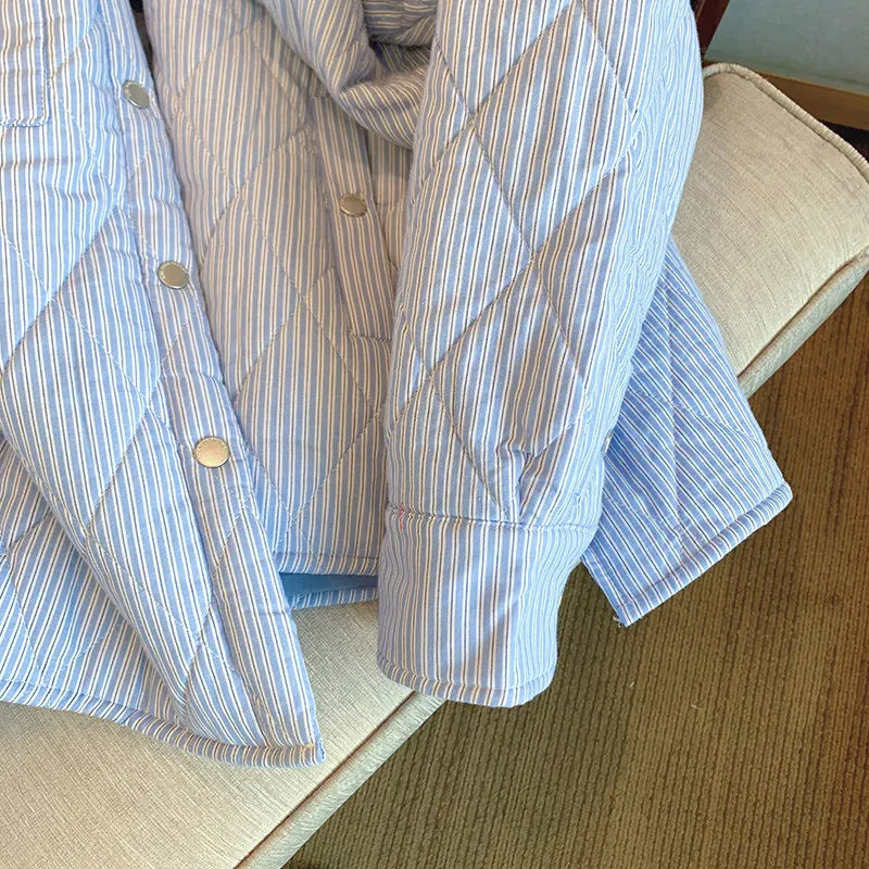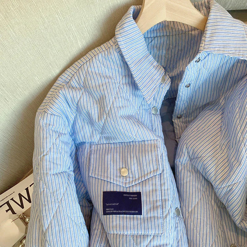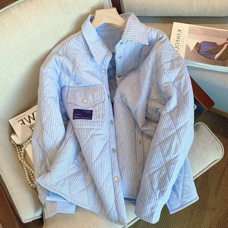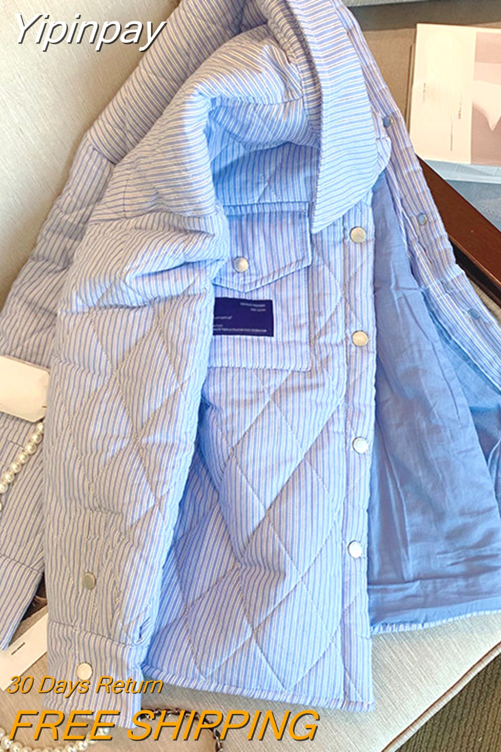 Yipinpay Striped Shirt Jacket Turn-down Collar Single Breasted Argyle Quilted Coat Autumn 2023 Korean Casual Parkas Puffer Tops