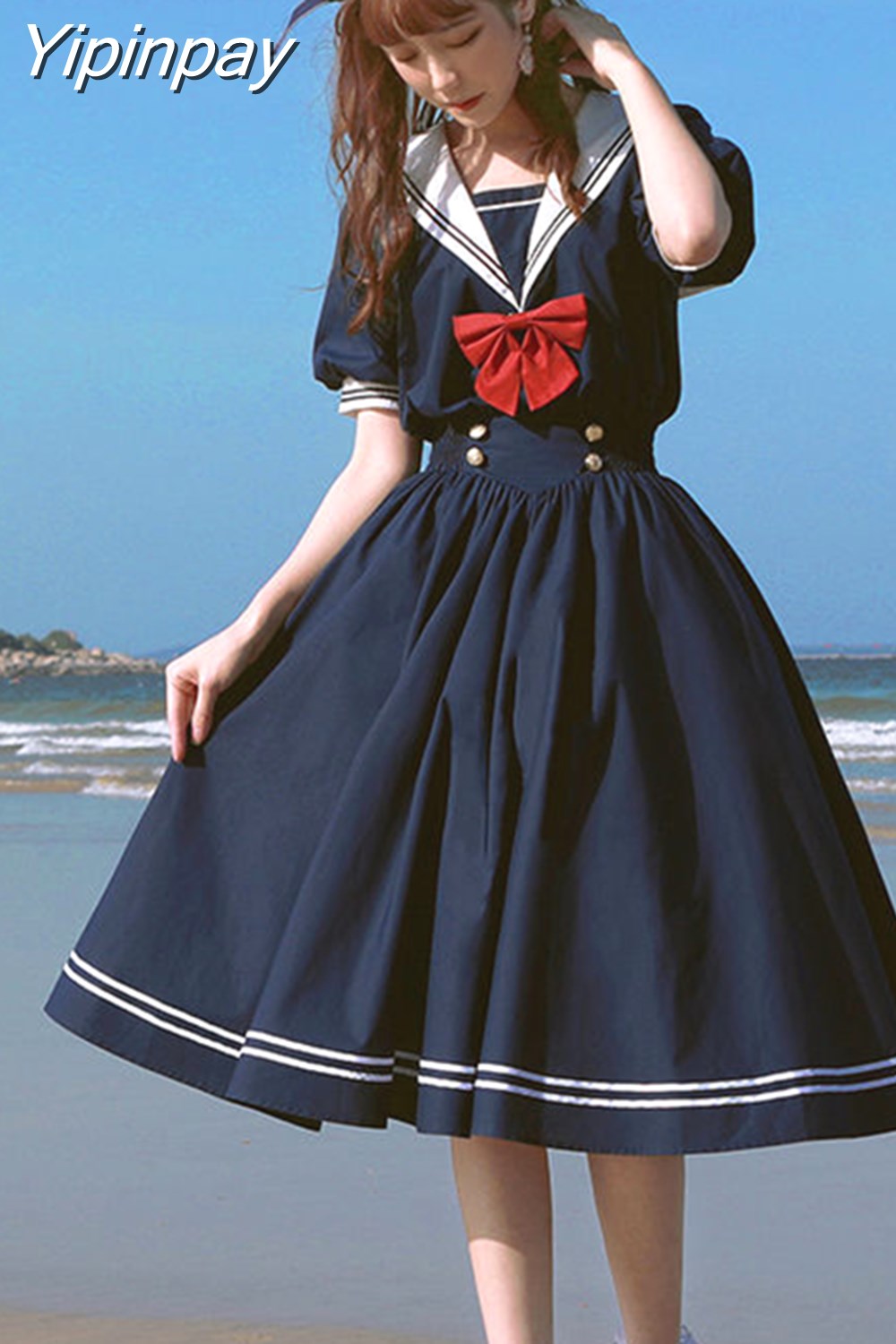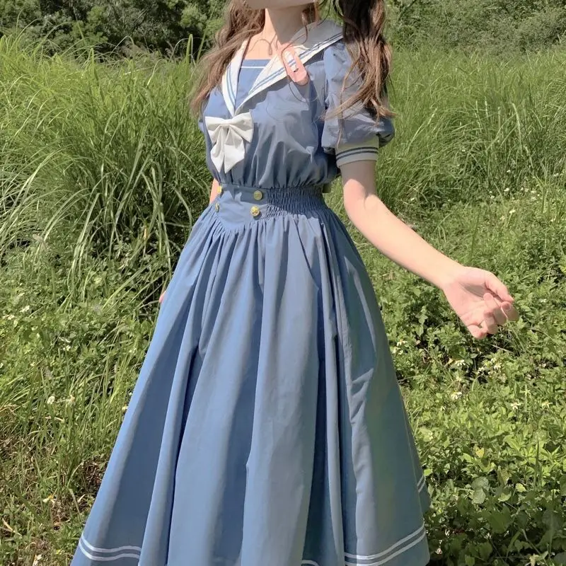 Yipinpay Style College Style Dress Women 2023 Summer New Student Loose Navy Collar Fairy A-line Woman Dress Vestido Feminino
