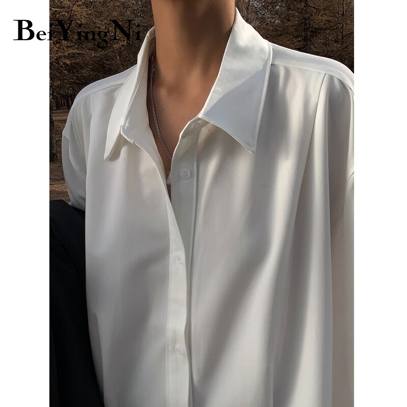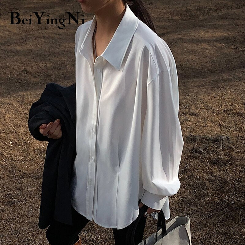 Yipinpay Stylish Oversized White Shirts Women Single-breasted Loose Casual Vintage Blouses And Tops Female Long Sleeve Blusas