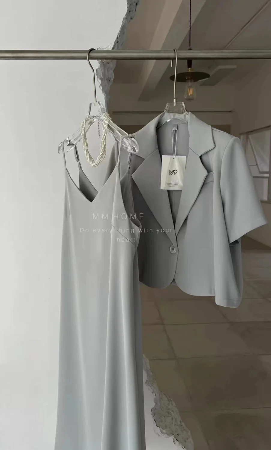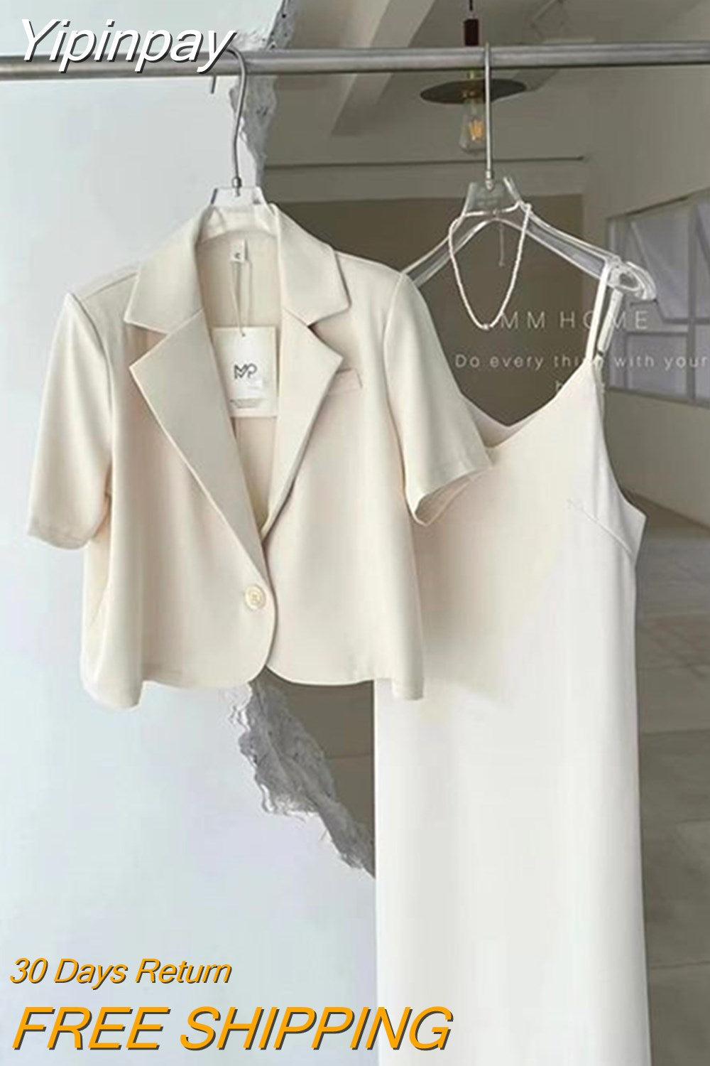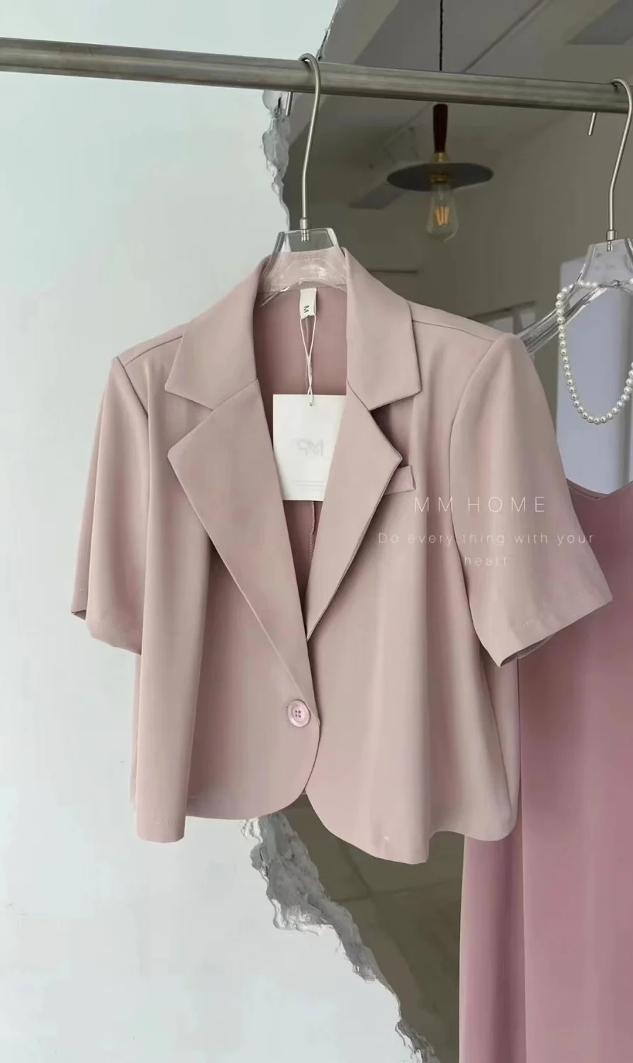 Yipinpay Suits Office Lady Grey Blazers Short Coat Short Sleeve Jacket Sexy Camisole Dress Bodycon Two Piece Sets Womens Outifits