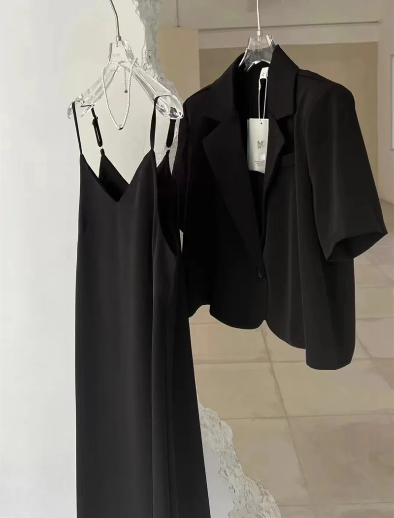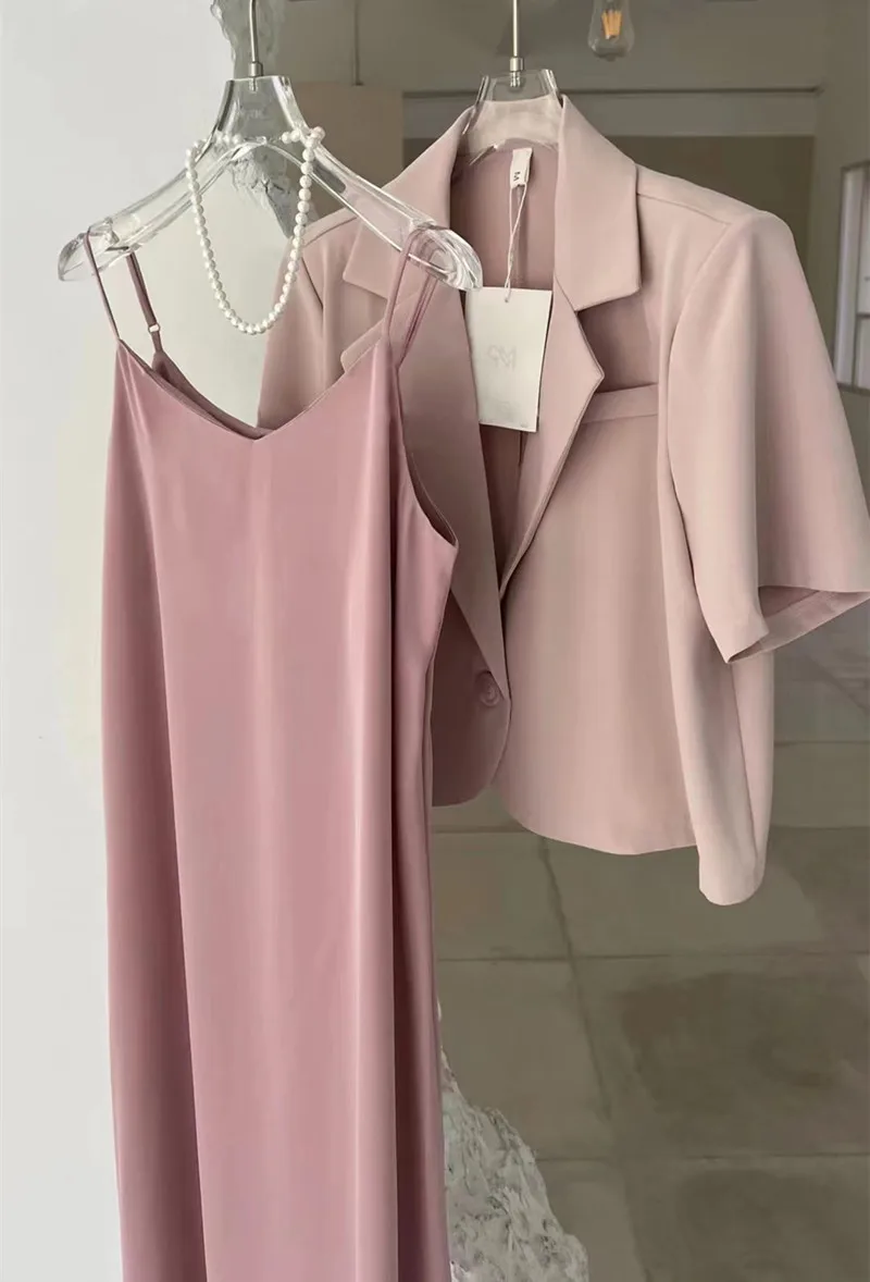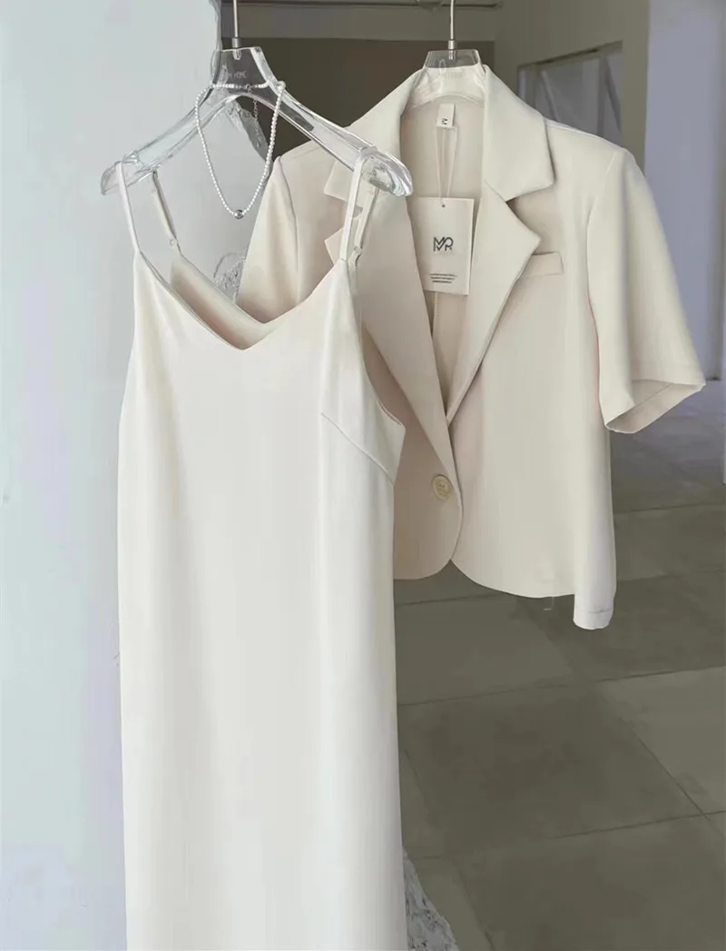 Yipinpay Suits Short Sleeve Blazers Office Lady Jacket Bodycon Sleeveless Camisole Sexy Dress Faldas Vestido 2 Piece Sets Outfits