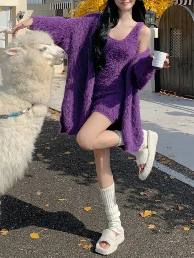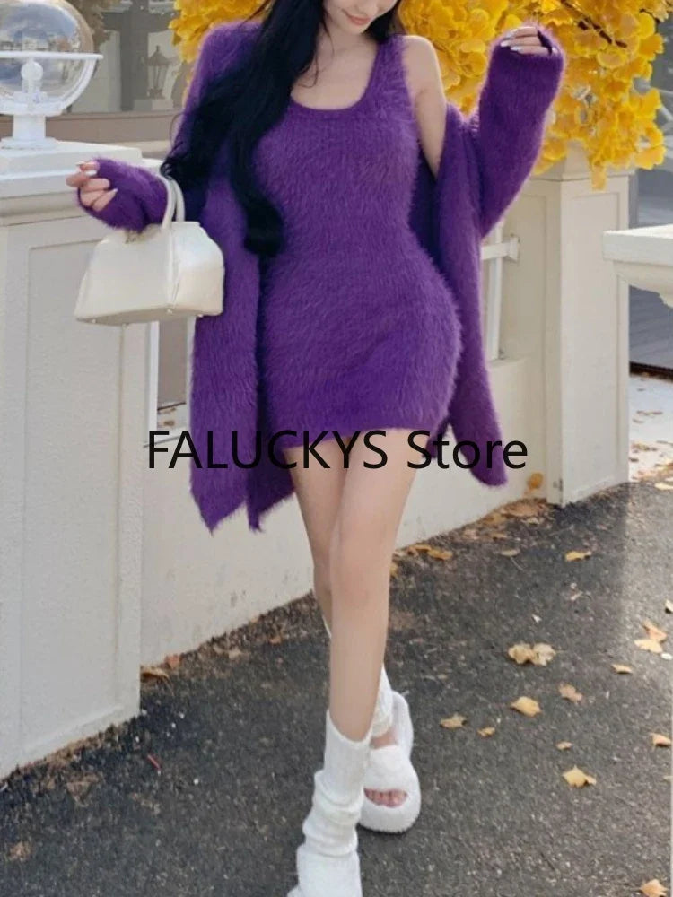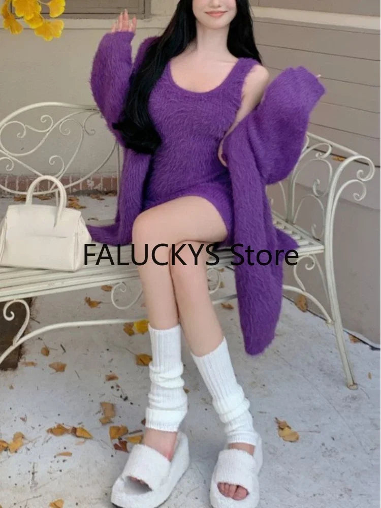 Yipinpay Sumemr Elegant 2 Piece Dress Set Offiece Lady Casual Long Sleeve Cardigan + Women Party Slim Mini Dress Korean Fashion
