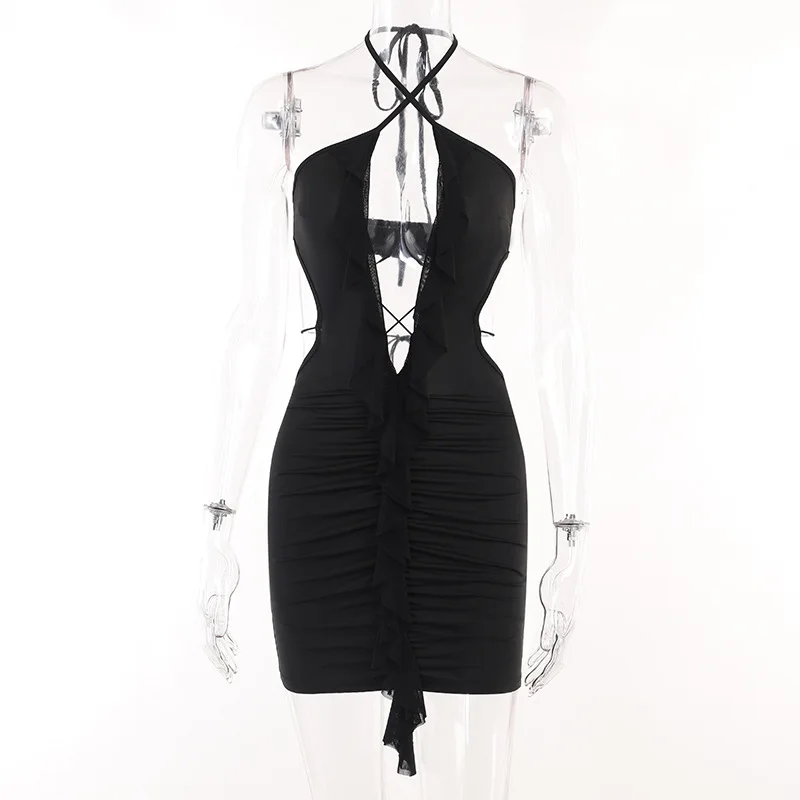 yipinpay Summer Dresses Woman 2023 Sexy Club Outfit Evening Mini Ruffles V Neck Casual Beach Party Print Backless Dress Bodycon