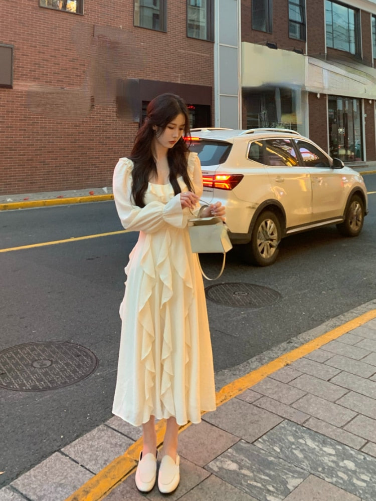 Yipinpay Summer Fairy Pure Color Midi Dress Woman Beach Style Long Sleeve Elegant Dress Casual Party Korean Fashion Dress Design