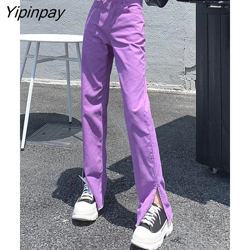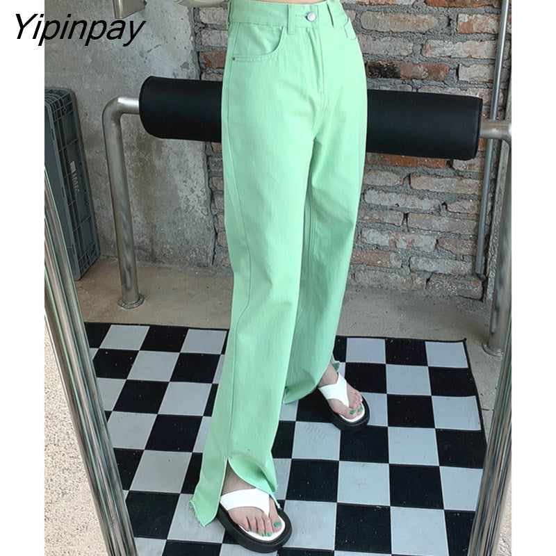 Yipinpay Summer High Street Colorful Straight Slit Jeans Woman High Waist Pantalones Vaqueros Mujer