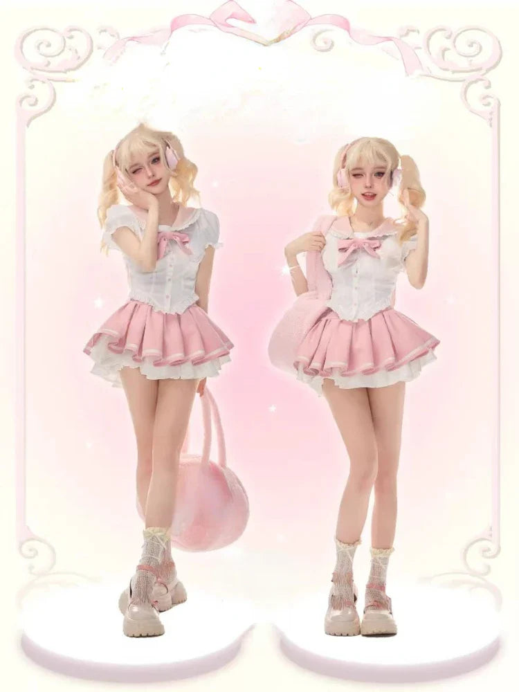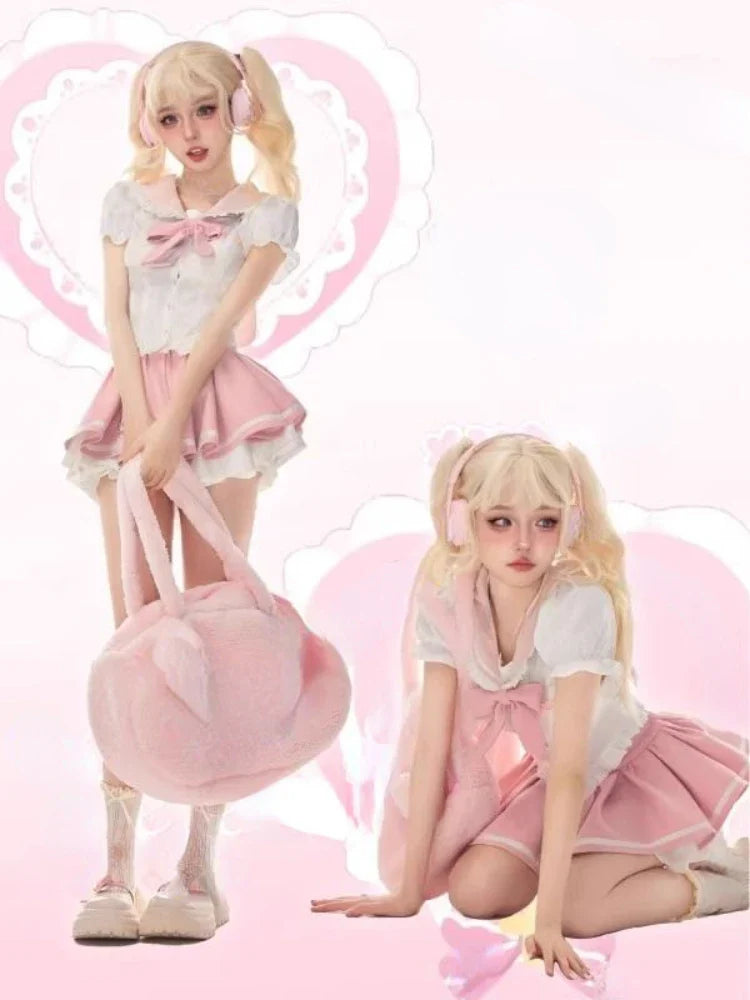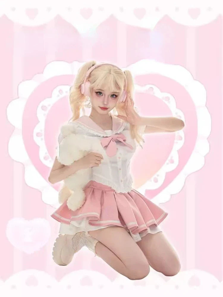Yipinpay Summer Kawaill 2 Piece Set Women Evening Party Slim Y2k Crop Top + Office Lady Causal Sweet Mini Skirt Korean Fashion Chic