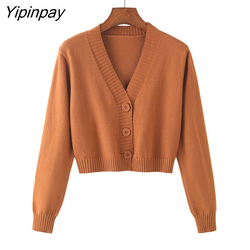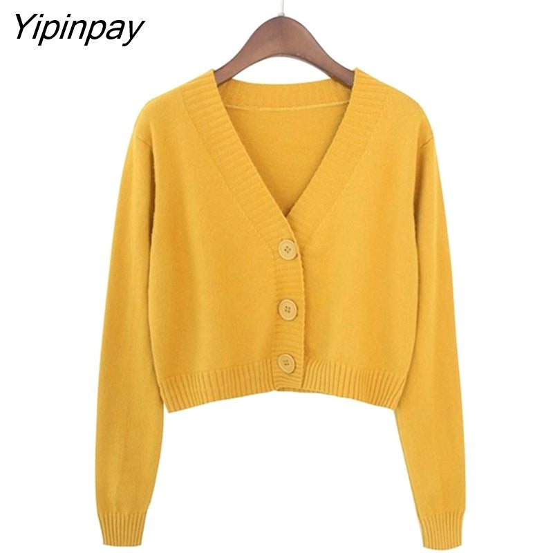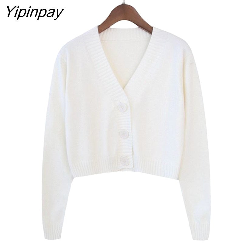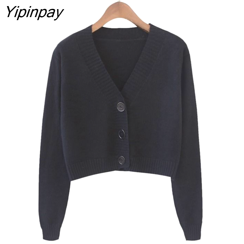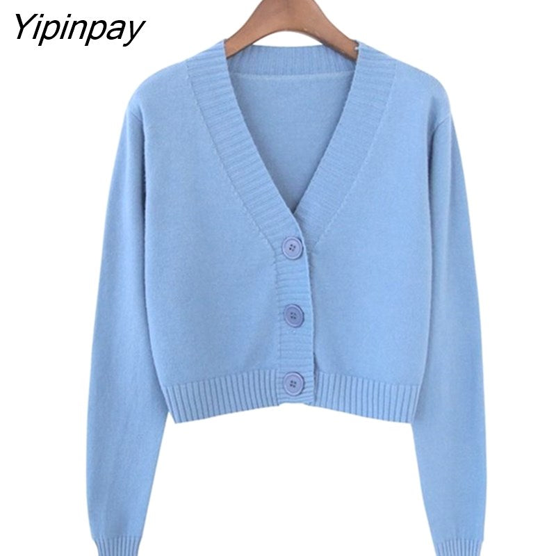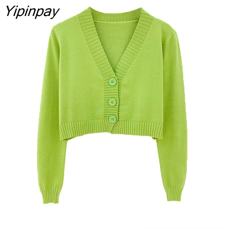 Yipinpay Summer Knitted Crop Cardigan Women Korean Short Sweater Long sleeve V neck Green Blue